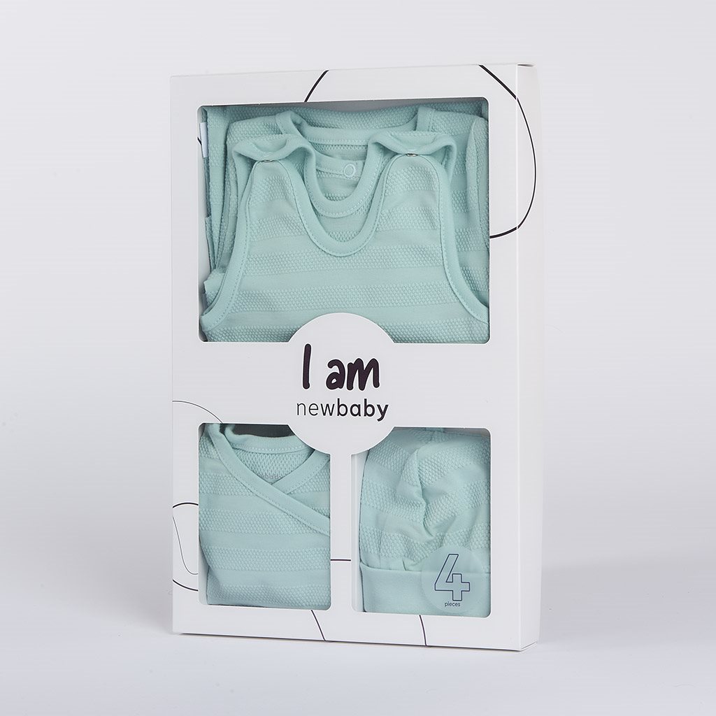 Roztomilá kojenecká 4-dílná soupravička české značky New Baby I AM pro miminka. Soupravička je vyrobena z velmi příjemného, měkkého a kvalitního materiálu, který je vhodný pro miminka a je vhodná nejen do porodnice. Obsahuje celorozepínací body s dlouhým rukávkem, dupačky, kabátek a čepičku. Body má boční zapínání po celé délce a mezi nožičkama na cvočky. Dupačky mají zapínání na cvočky na ramínkách a mezi nožičkama, coš usnadní oblékání a přebalování. Kabátek má zapínání na cvočky po celé délce. Čepička s širším lemem dobře drží na hlavičce miminka a nepadá. Je velmi praktická a netlačí na hlavičku miminka. Celá soupravička má nový neobyčejný design s atraktivním vzorem látky. Je navržena s ohledem na potřeby miminka a je vhodná i jako milý dáreček. Soupravička je v praktické Eko krabičce. Složení: 100% bavlna.