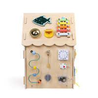 Dřevěný domeček Baby Mix promění učení v hru! Každá jeho stěna ukrývá jinou aktivitu, která děti láká k zkoumání, tvoření i tréninku zručnosti. Malí objevitelé si mohou zatočit barevným volantem, vyzkoušet řazení, posouvat korálky v labyrintu nebo roztočit ozubená kolečka a sledovat, jak do sebe zapadají.