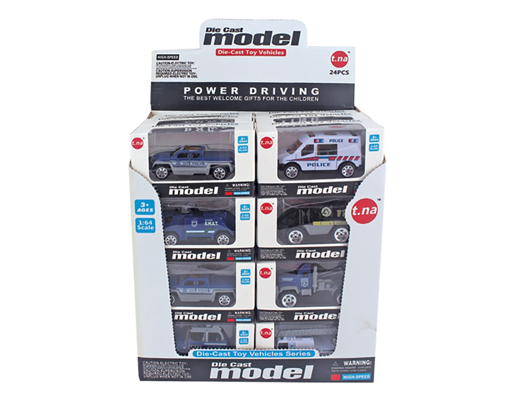 Auto policie volná kola. Velikost 7,5 cm. Display box 24 ks. 6 variant.