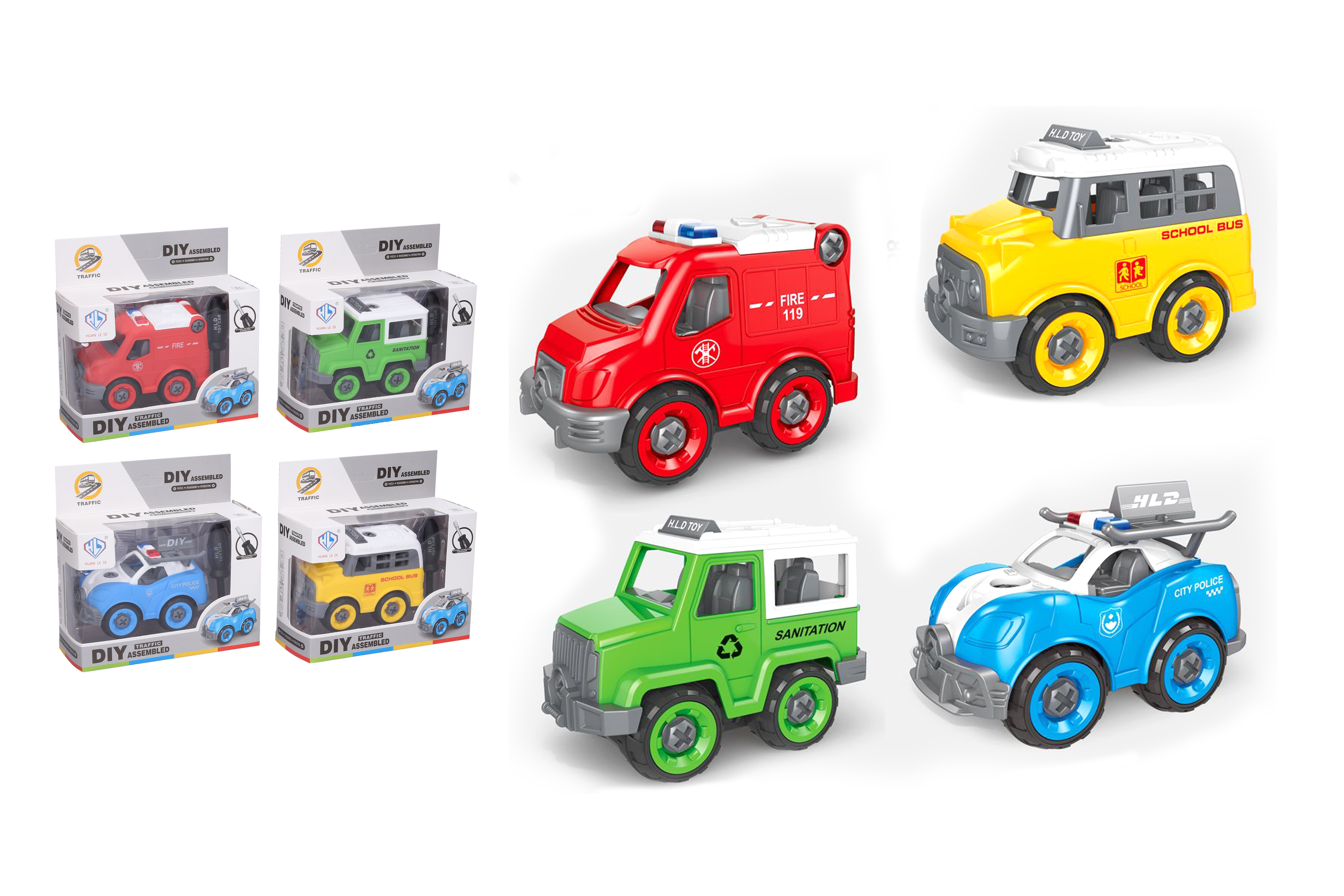 Auto šroubovací. Rozměry 12x5x8 cm. 4 varianty - hasiči, policie, autobus, úklid.