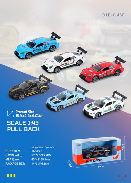 Auto závodní kovové. Rozměry 10,5x4,4x3,2 cm. Na zpětné natažení. 6 variant.
