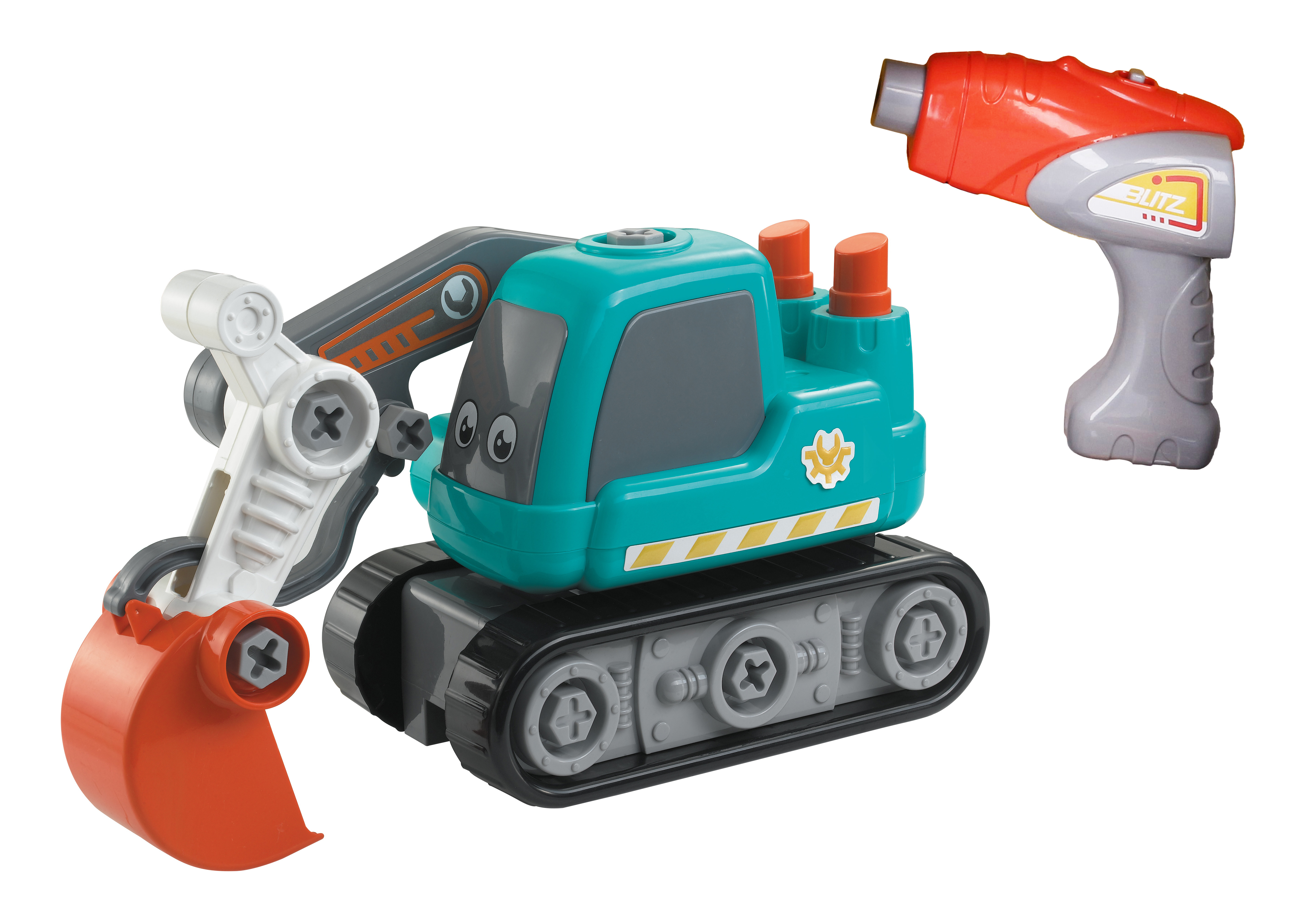 Bagr šroubovací s elektrickým šroubovákem. Obsah balení - bagr s elektrickým pohonem (rozměry 29x14x19,5 cm), elektrický šroubovák, sada klíčů a šroubovák s násadami. Elektrickou jednotku šroubováku je možné vyjmout a vložit do bagru. 2xAA baterie do šroubováku, nejsou součástí.