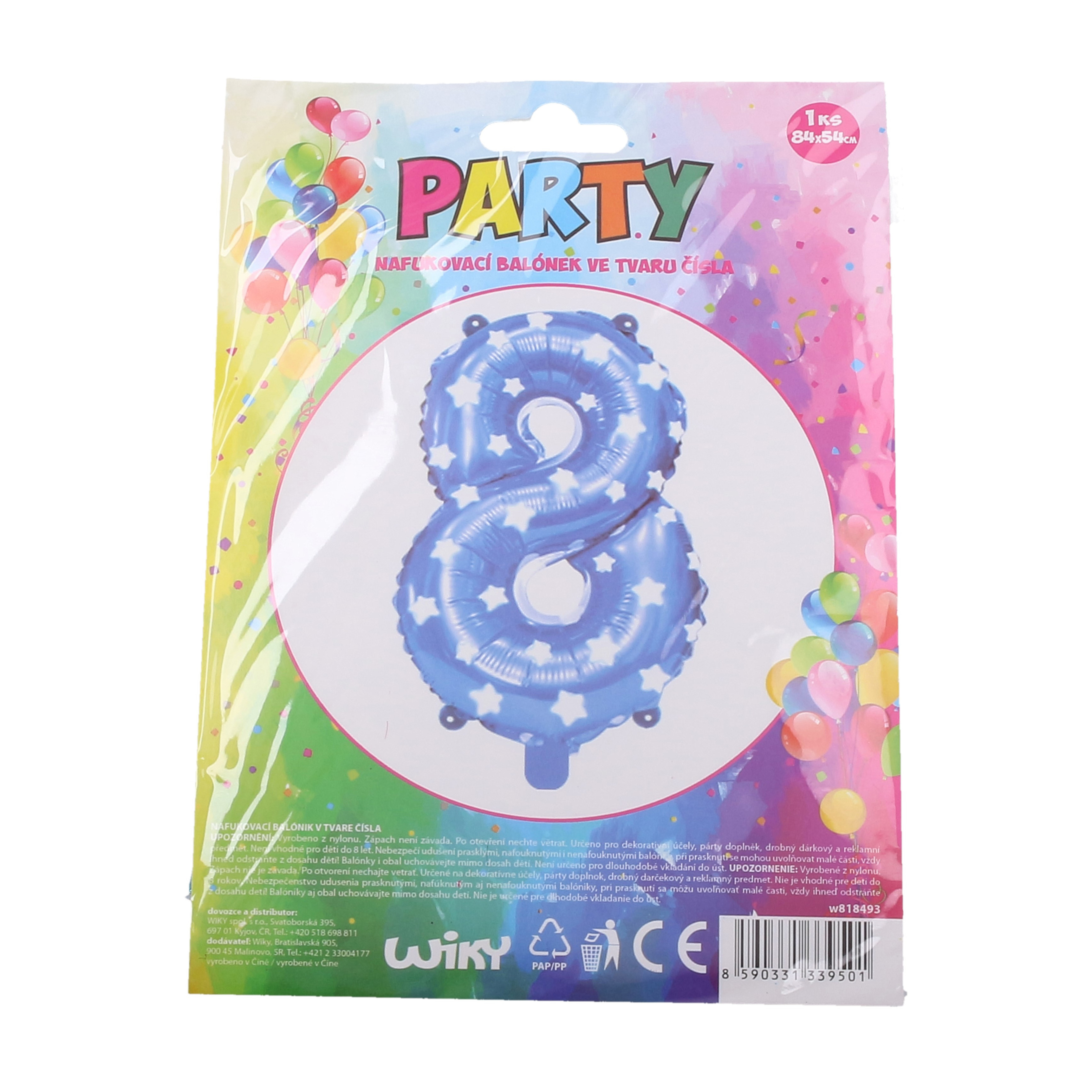 Modrý nafukovací balónek s hvězdičkami ve tvaru čísla je vhodný jako doplněk na narozeninovou párty!
