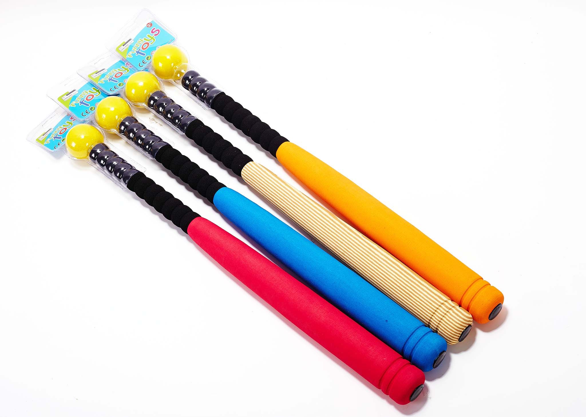 Baseball set. Součástí pěnová pálka a míček. Délka pálky cca 53 cm. 4 varianty - červená, modrá, oranžová, pruhovaná.