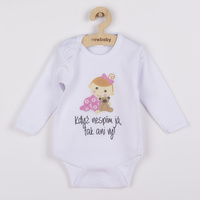 Originální bavlněné kojenecké body s dlouhým rukávem New Baby, s vtipným nápisem Když nespím já, tak ani vy! A obrázkem roztomilé holčičky. Body má kolem krčku, nožiček a ručiček barevné lemování. Barvy použité k potisku jsou certifikované a vhodné pro miminka. Je vyrobeno z příjemného a kvalitního materiálu, ve kterém se bude Vaše miminko cítit příjemně. Body má zapínáni na cvočky na ramínku a mezi nožičkami, což usnadňuje oblékání a přebalování. Dopřejte Vašemu miminku vyniknout v originálním body. Složení: 100% bavlna. Rozměry: obvod kolem hrudníku cca 36 cm, délka rukávu cca 18 cm, celková délka cca 32 cm.