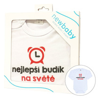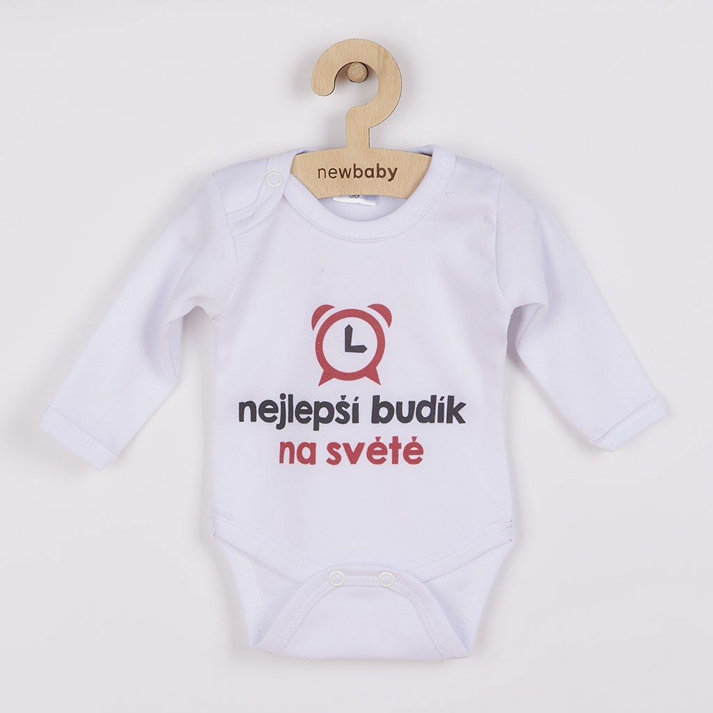 Originální bavlněné kojenecké body s dlouhým rukávem New Baby, s vtipným nápisem nejlepší budík na světě a ilustrovaný budíček. Barvy použité k potisku jsou certifikované a vhodné pro miminka. Je vyrobeno z příjemného a kvalitního materiálu, ve kterém se bude Vaše miminko cítit příjemně. Body má zapínáni na cvočky na ramínku a mezi nožičkami, což usnadňuje oblékání a přebalování. Dopřejte Vašemu miminku vyniknout v originálním body. Složení: 100% bavlna. Rozměry: obvod kolem hrudníku cca 34 cm, délka rukávu cca 16 cm, celková délka cca 30 cm.
