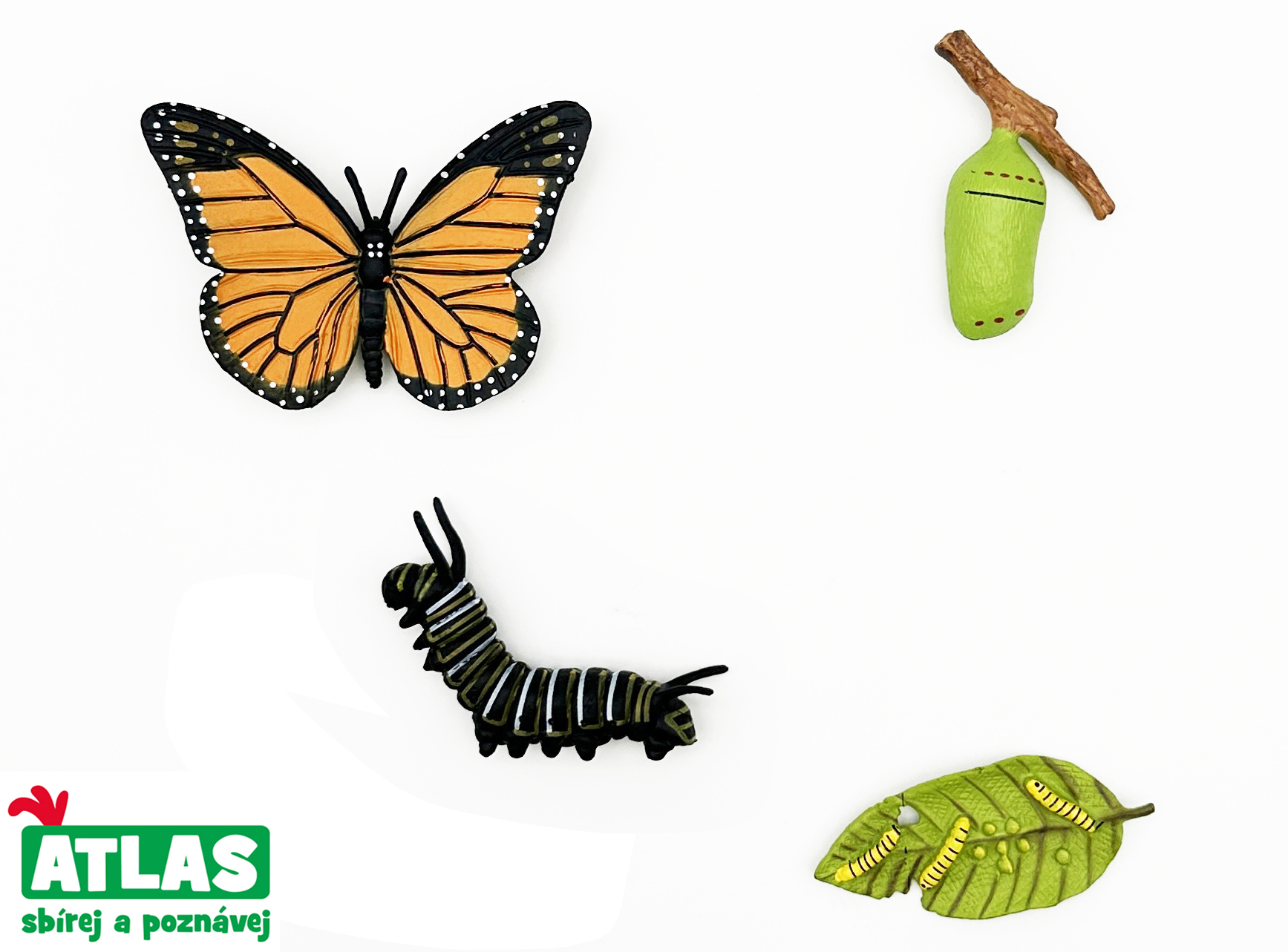 Figurka Motýl 4 vývojové fáze. Velikost 8 cm. 4 varianty - vajíčka, housenka, kokon, motýl.