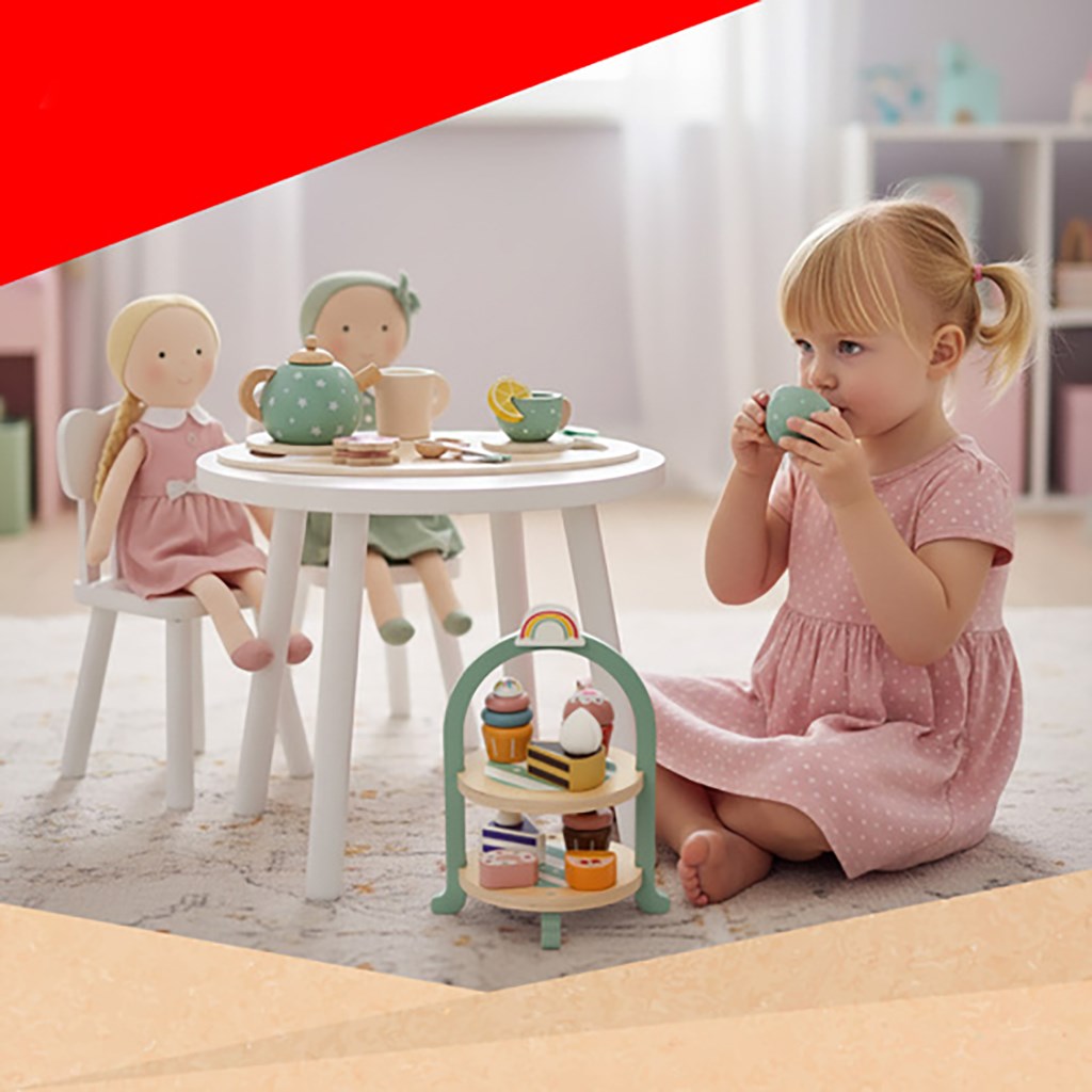 Proměňte každý běžný den v mimořádné odpoledne! Tato dřevěná sada pro děti s etažérem přináší kouzelný svět cukrárenské zábavy – od servírování dezertů až po vytváření vlastních narozeninových příběhů. Každý díl je vyroben z bezpečného, hladkého dřeva a pastelové barvy vypadají jako opravdové sladkosti. Není to jen hračka, ale způsob, jak učit kreativitu, spolupráci a společenské způsoby – s úsměvem a bez nepořádku!
