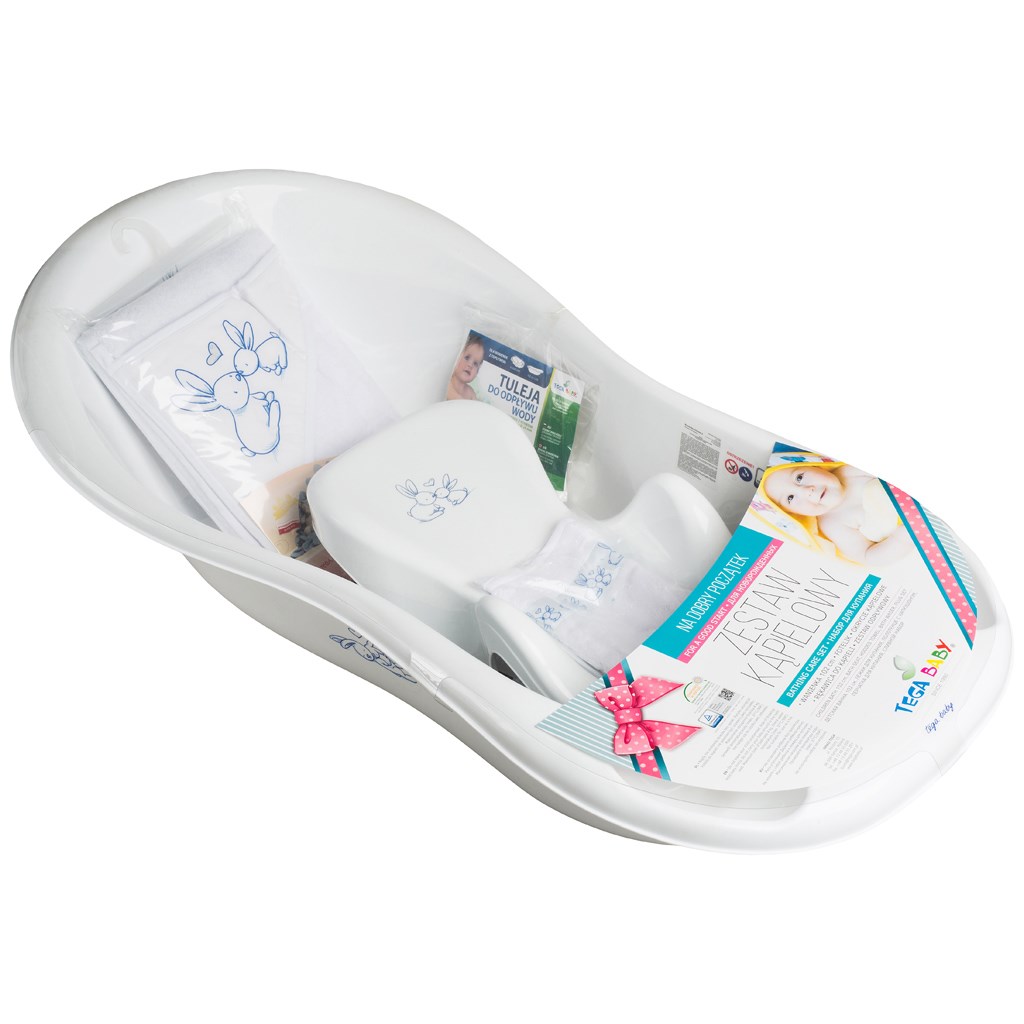 Dárková sada ke koupání miminek je skvělým pomocníkem každé mamince hned od prvních dnů příchodu miminka na svět. Může být i praktickým dárkem pro všechny nastávající rodiče. Naleznete v ní základ, potřebný v prvních měsících života Vašeho dítěte, díky němuž se péče o novorozeně stane snadnější a příjemnější. Sada obsahuje vaničku, lehátko ke koupání, osušku s kapucí, mycí žínku a odtokovou hadičku s výpustí. Anatomicky tvarovaná plastová vanička má dva praktické otvory na okrajích pro položení mýdla nebo houbičky a výpust pro lepší a pohodlnější vypouštění vody. Anatomicky tvarované lehátko do vaničky usnadňuje bezpečné koupání kojence. Spodní strana má protiskluzovou úpravu pro ještě větší bezpečí Vašeho dítěte. Přiložená osuška s kapucí je vyrobena z příjemného a měkkého materiálu, vnitřní strana osušky je bavlněná, vnější fleecová pro lepší zahřátí. Praktická froté žínka ve tvaru rukavice je vyrobena příjemného a měkkého materiálu a opatřena praktickým poutkem na zavěšení. Výpusť s odtokovou hadičkou usnadní vypouštění vody s vaničky.