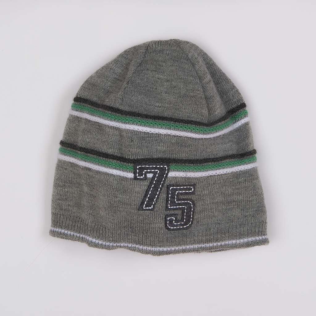 Krásná dětská čepička vhodná pro běžné nošení Vašich dětí. Klasický střih čepičky z jemné pleteniny se díky pružnému materiálu přizpůsobí hlavičce Vašeho dítěte. Čepička je jednobarevná s pruhy a číslem 75. Velice příjemný materiál. Složení 100% akryl. Velikost 52-54.Vhodné i pro starší děti.