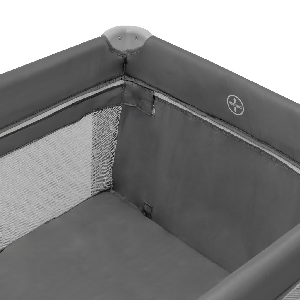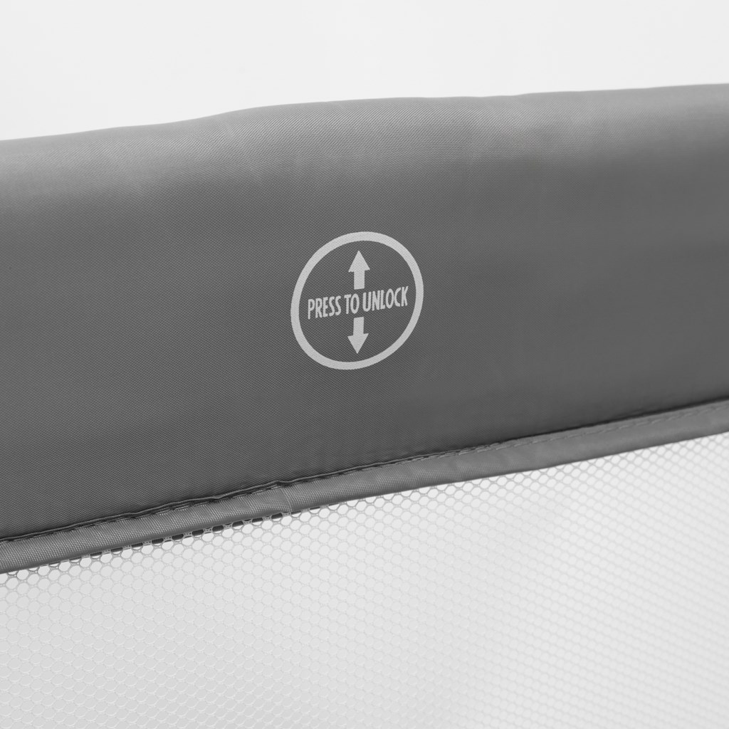 - Síťované bočnice pro optimální cirkulaci vzduchu a vizuální kontakt s dítětem