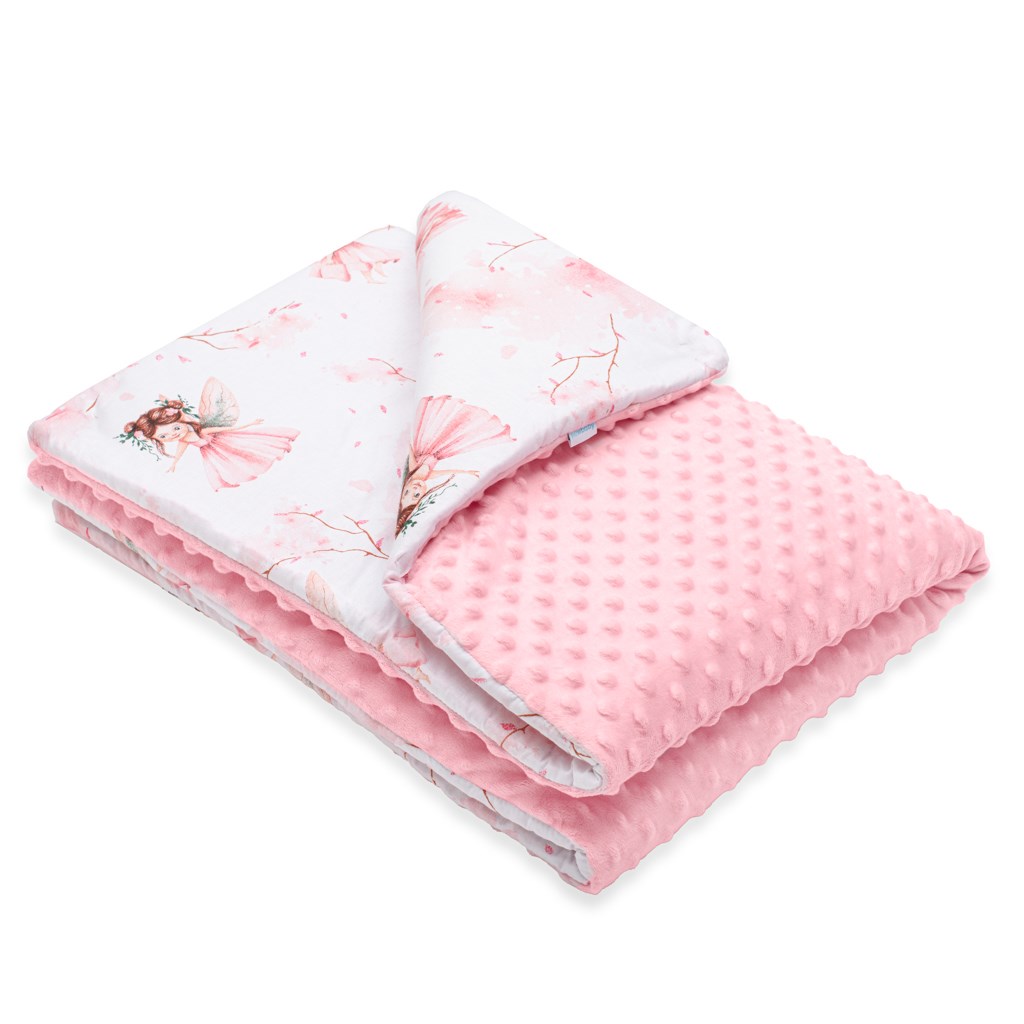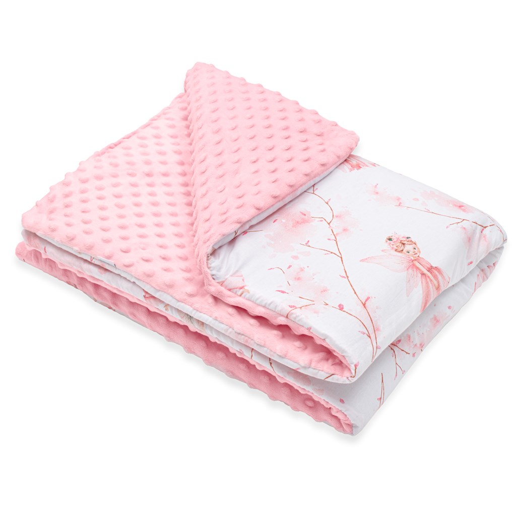 Dětská deka české značky New Baby Víly je vyrobena ze dvou typů tkanin. První je velmi měkká a na dotek příjemná, hebká Minky látka s výstupky pro stimulaci senzomotoriky a druhá je 100% bavlna s originálními obrázky a vzory, které pomáhají dětem učit se nové věci a rozvíjet jejich fantazii. Deka je hrubší a teplejší díky výplni s antialergickým vláknem. Je ideální jak pro miminka od narození, tak pro větší děti. Deku můžete používat jak doma, tak venku, v kočárku, postýlce, autosedačce či jako hrací deku. Je vyrobena z velmi kvalitního materiálu, který nepouští barvu a nevyvolává alergické reakce.