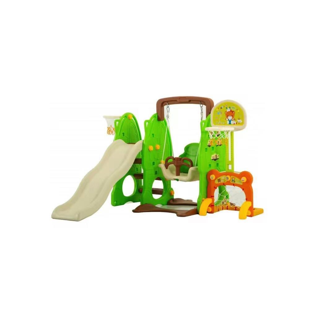 Zahradní skluzavka 3v1 s houpačkou a basketbalem nabízí dětem ideální kombinaci pohybu, zábavy a rozvoje dovedností. Díky multifunkčnímu provedení si děti užijí skluzavku, houpání i hru s míčem na jednom místě. Skvělé řešení pro aktivní trávení času doma i venku.