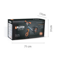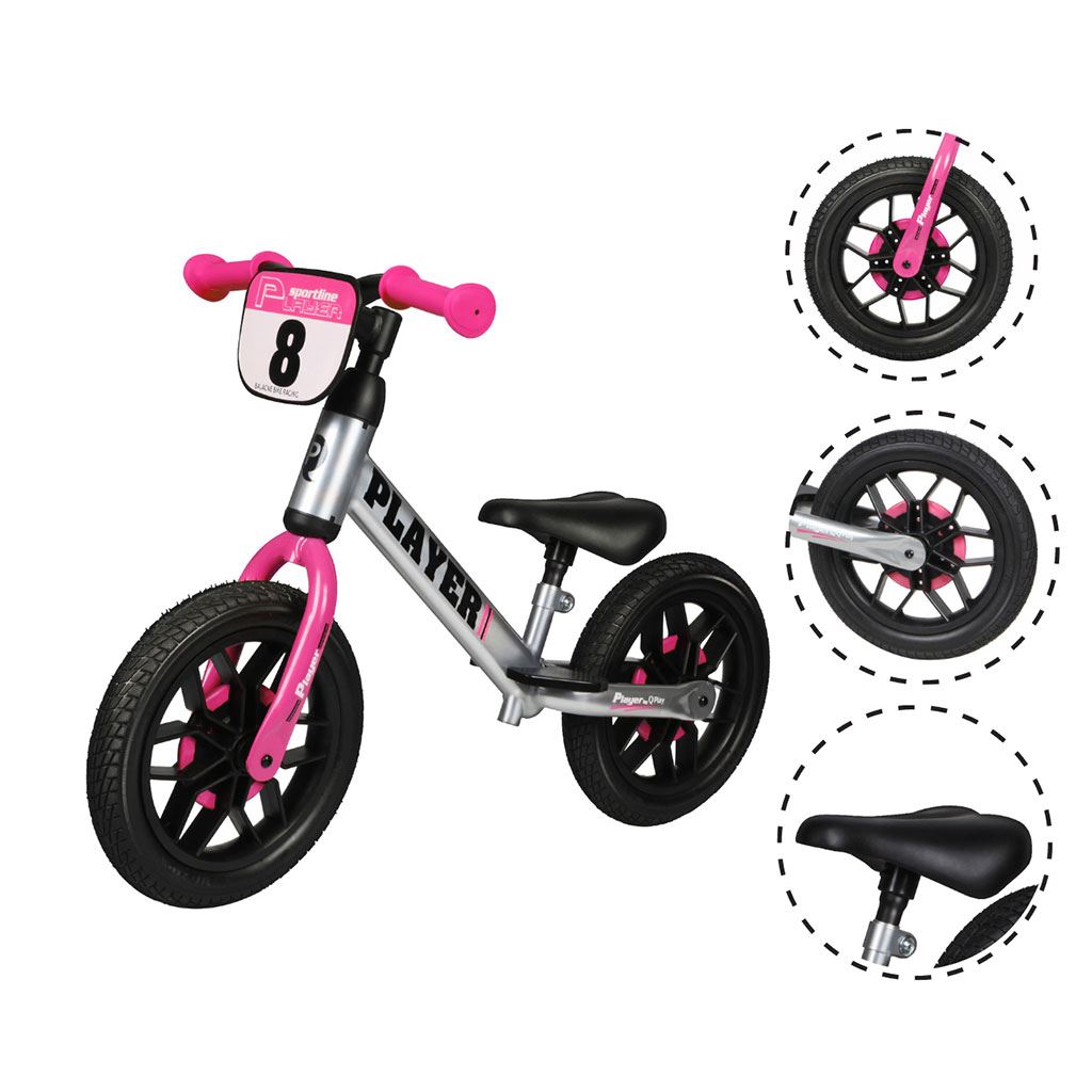 Balanční kolo PLAYER má jedinečný rám a nastavitelné polstrované sedadlo, které se přizpůsobí vašemu dítěti. Ergonomický design, robustní kovový rám a gumové rukojeti řídítek zajistí, že děti budou mít při hře pevný úchop a tím získá jistotu. Pneumatiky EVA o průměru 12" použité na kole zajistí stabilitu a bezpečnost na všech typech silnic. Kolo Qplay PLAYER usnadní přechod k jízdě na kole bez bočních koleček.