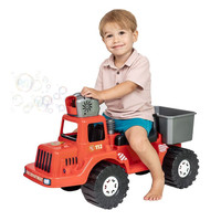 Hasičské odrážedlo s bublifukem Bayo dokáže vytvořit nekonečné množství bublin. Na kabině vozu je bublifuk, ze kterého po nalití mýdlového roztoku a roztočení klikou vylétají bubliny.
