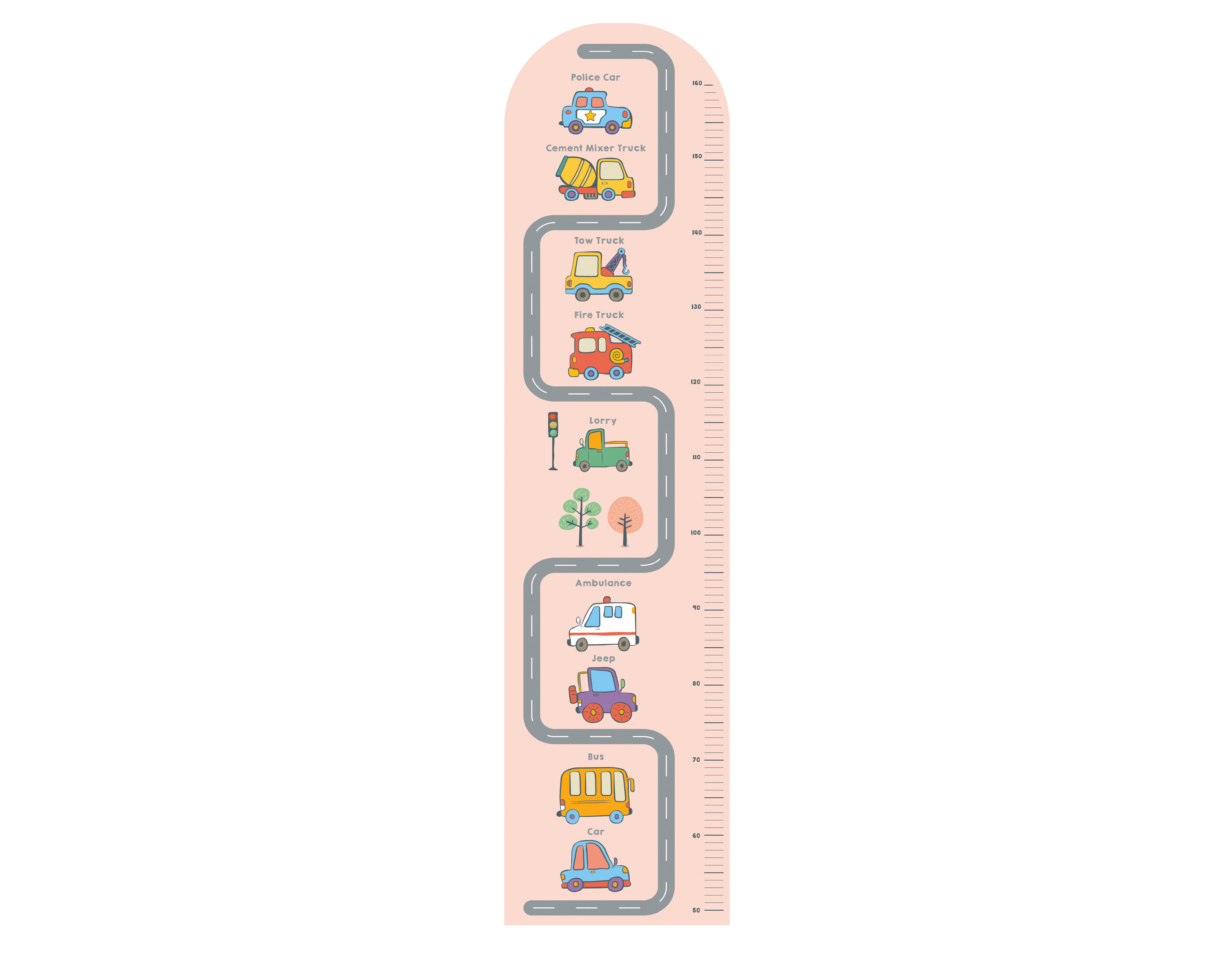 Dětský metr na zeď pěnový auta. Délka 120 cm, šířka 30 cm. Vyznačená výška 50 cm - 160 cm.