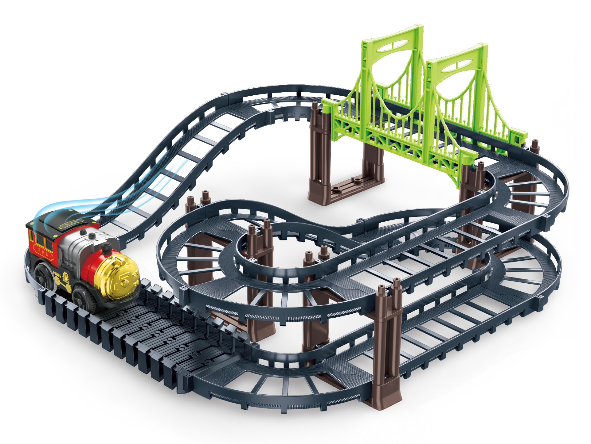 Dráha mašinka. Rozměry dráhy 31x32x14 cm. Aktivace mašinky ON/OFF přepínačem na spodní straně. Pokyny k sestavení na obalu. Baterie 1xAA, nejsou součástí. Sada obsahuje 38 dílů.