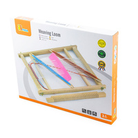 Dřevěný ruční tkalcovský stav, na kterém si dítě může vytvořit vlastní látky.