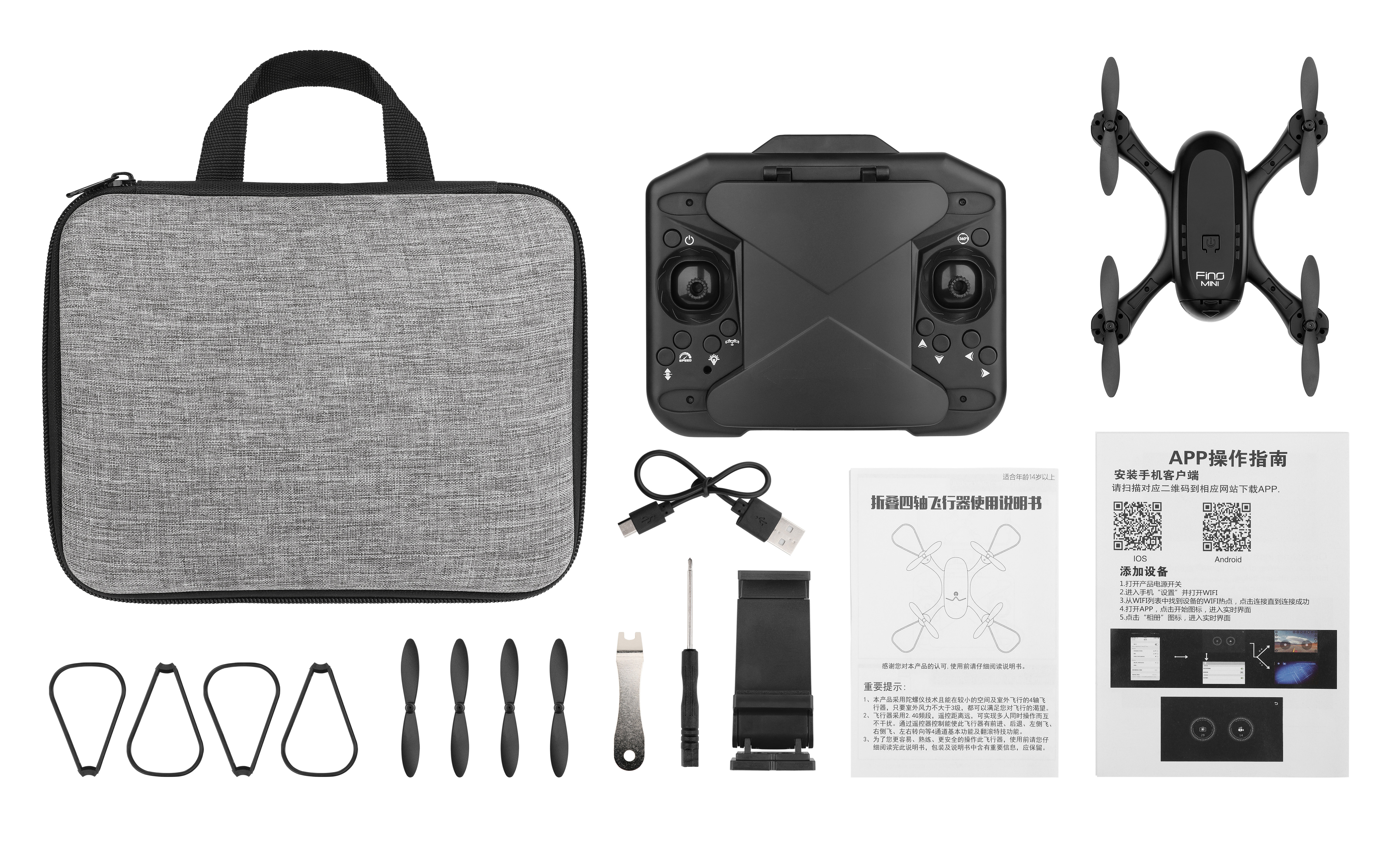 Dron skládací do ovladače s WIFI kamerou 720p RC na dálkové ovládání. Rozměry dronu 9x9x4 cm, ovladače 12x14x6,5 cm. Frekvence 2.4GHz. Světelné efekty. Bateriový pack 3.7V 650mAh do dronu součástí, 3xAAA baterie do ovladače nejsou součástí. USB kabel součástí. Ovládání ovladačem nebo aplikací ze smartphonu přes WIFI. Pořizování fotografií a fotek 720p ovladačem, aplikací či gestem, stiskem automatický vzlet a přistání, nouzové přistání, obrat o 360 stupňů, udržování dané výšky, nastavení 3 rychlostí letu, headless mode. Provoz 8 min, nabíjení 60 min, dosah 50-80 m. Váha 375 g.