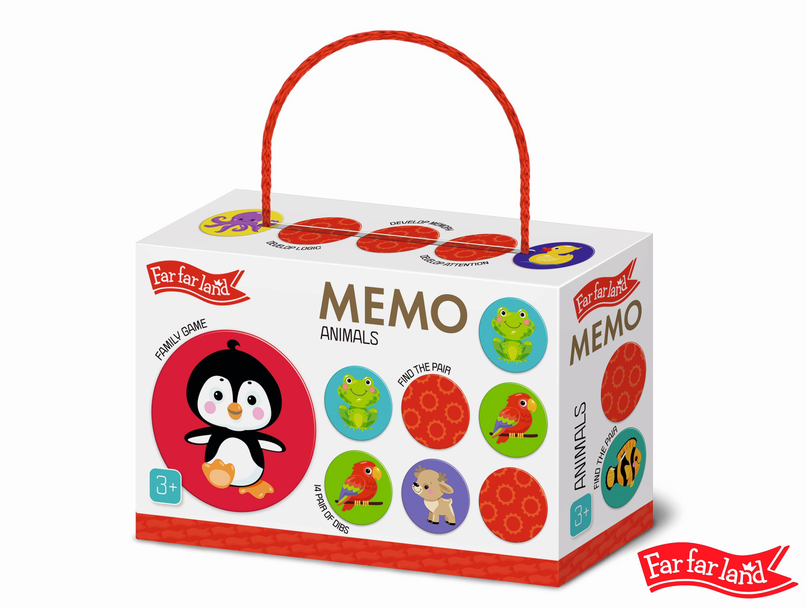 Far Far Land Pexeso, motiv zvířátka. Balení obsahuje 28 kulatých kartiček s obrázky.