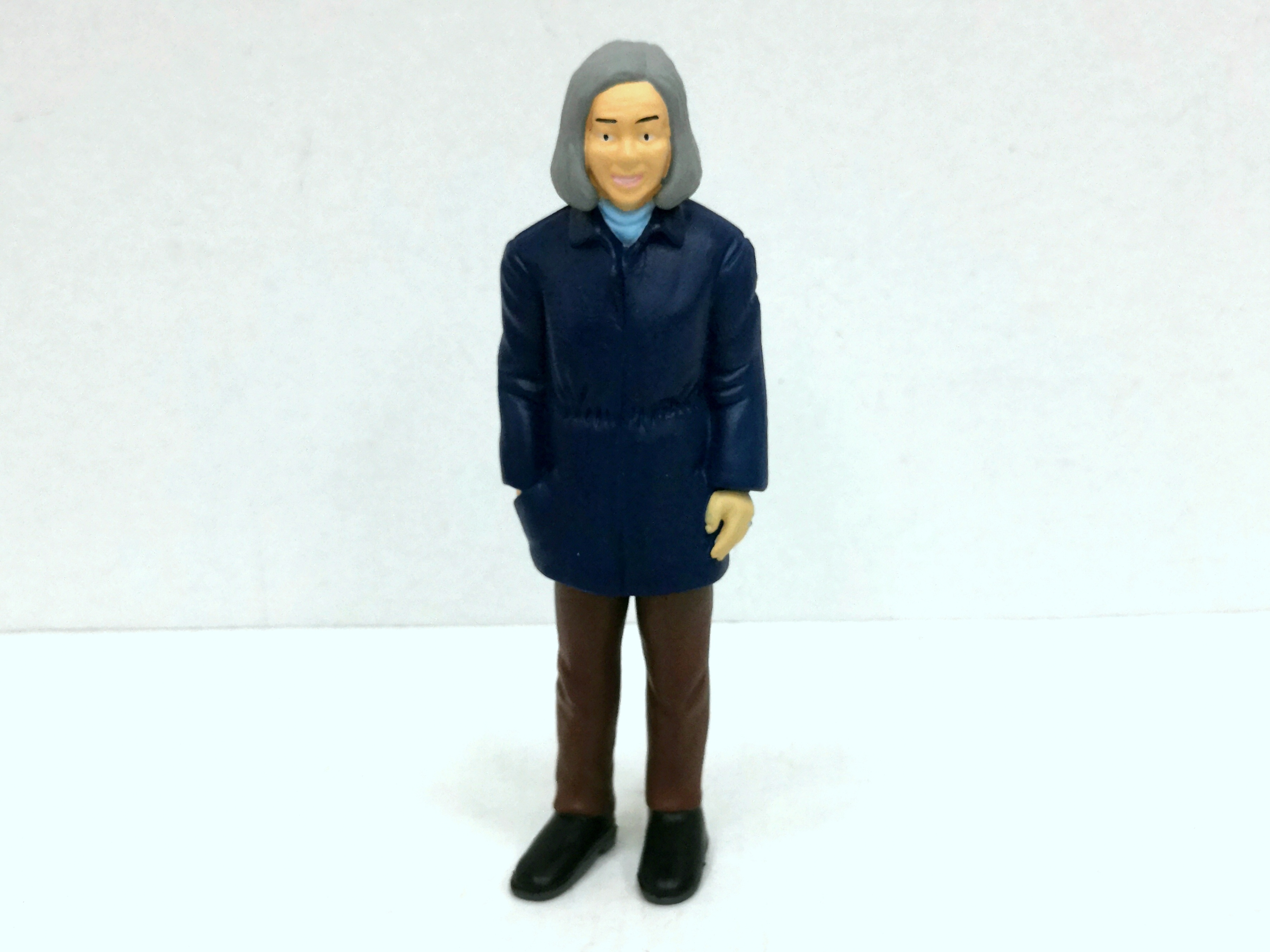 Figurka muž v bundě. Rozměry 4,1x2,4x12,6 cm.