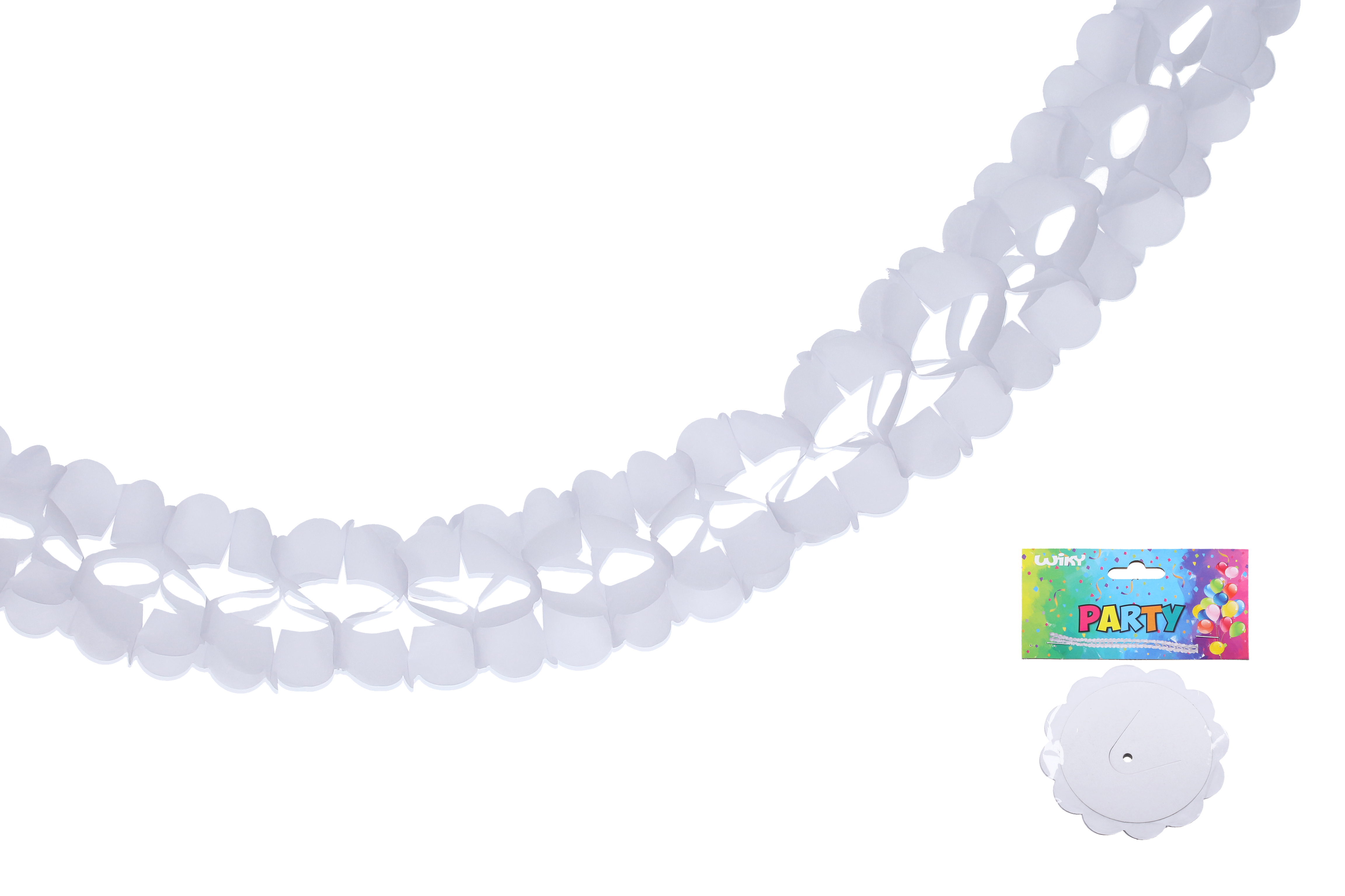 Papírová bílá girlanda o délce 3,6 m.