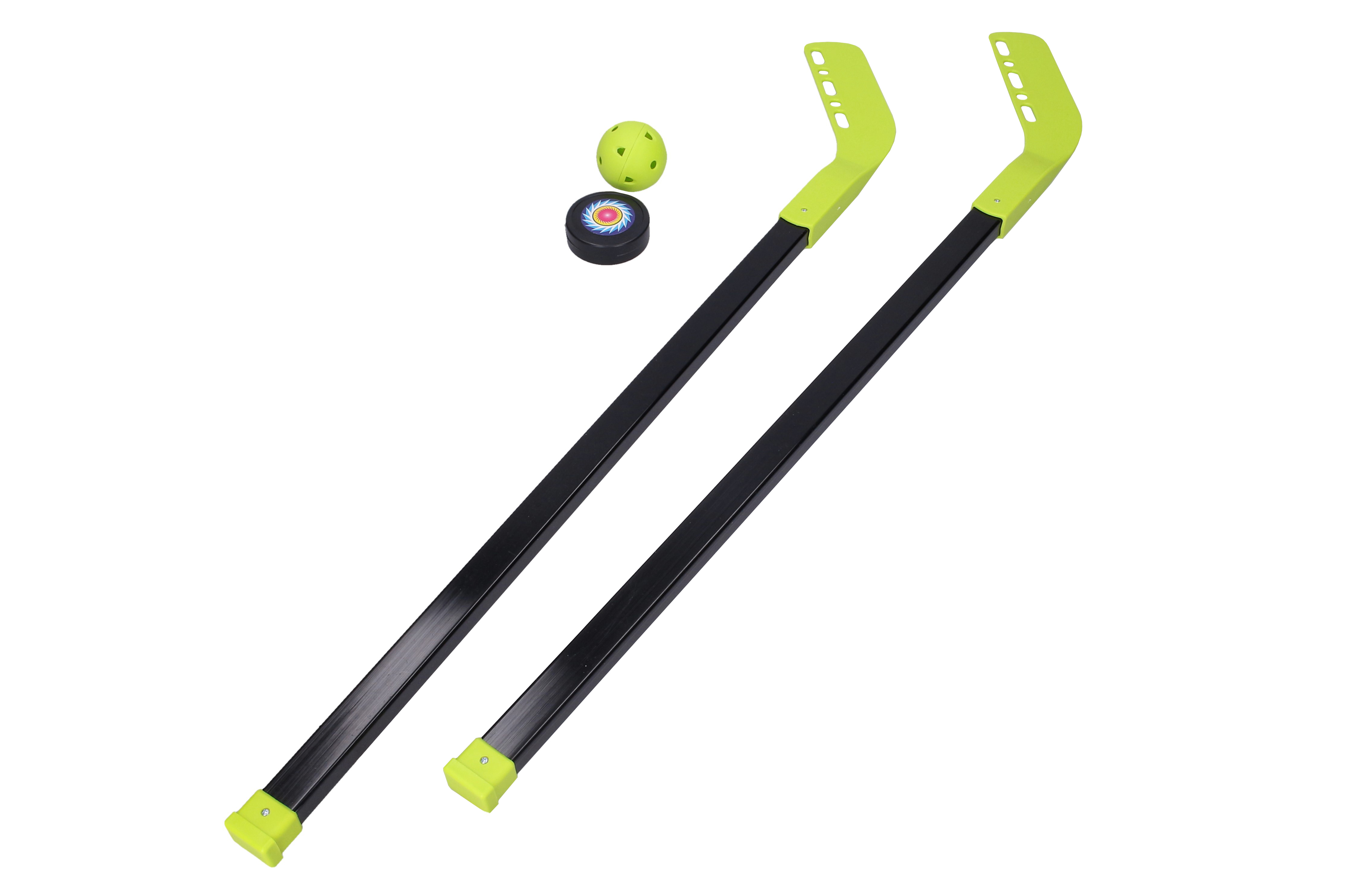 Hokej set puk a míček. Obsah balení - 2x hokejka (délka hokejky 83 cm), 1x míček (5,6 cm), 1x puk (6,3 cm).