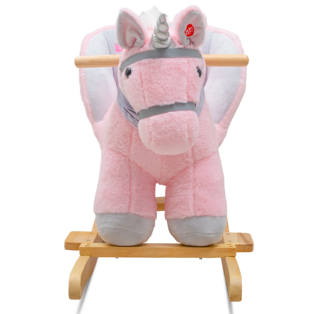 Růžový houpací koník–jednorožec značky Baby Mix je výjimečná hračka, která okouzlí každé dítě a stane se jeho nejlepším parťákem na hraní. Je vyrobený z měkkého, příjemného plyše a stojí na stabilních dřevěných lyžinách, což zajišťuje bezpečnou a pohodlnou hru.