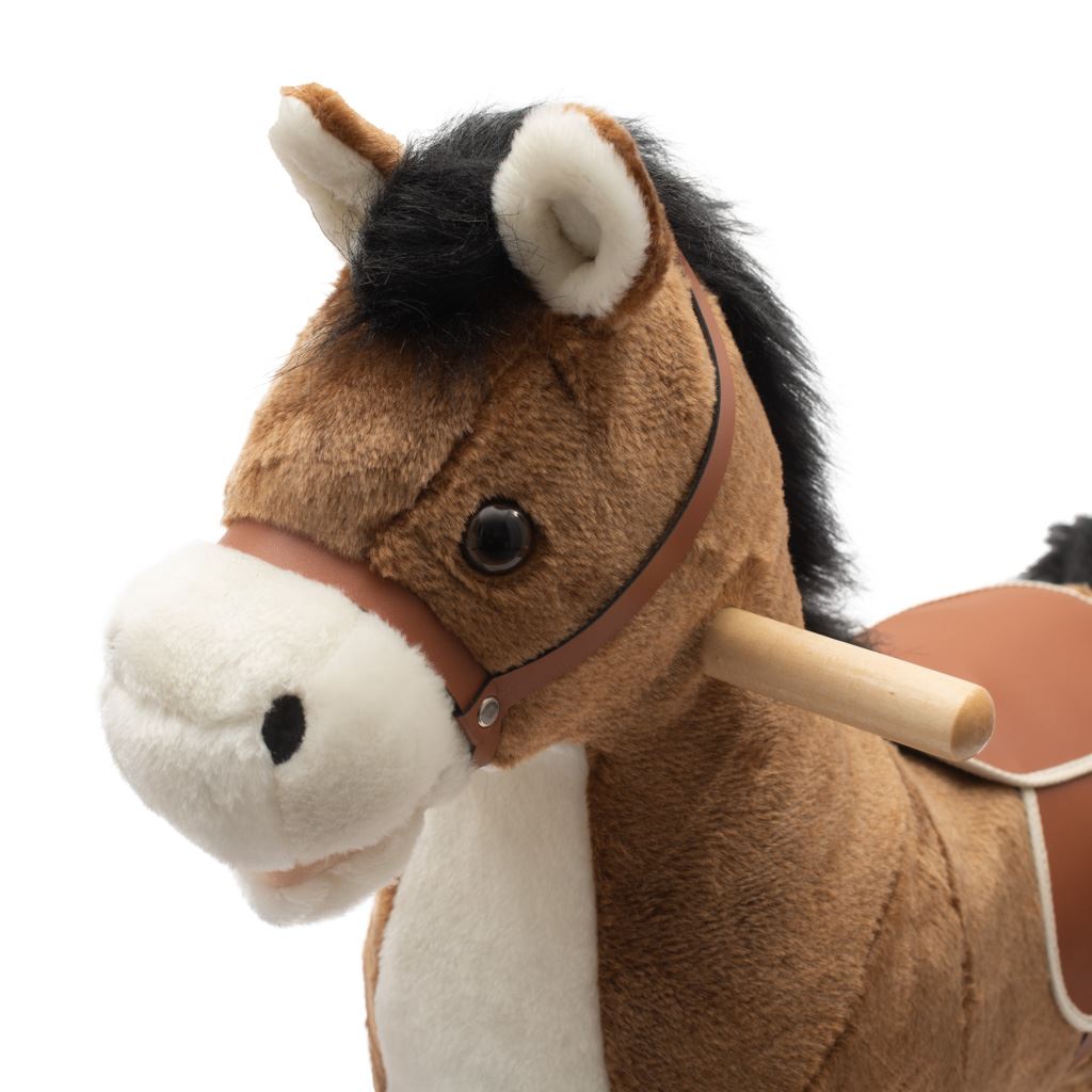 Krásný houpací koník PlayTo byl navržen pro děti, které mají rády houpání a dobrodružství. Je vyroben z hebkého a velmi příjemného na dotyk plyšového materiálu. Po stisknutí ouška koník pohybuje tlamičkou a přehraje českou písničku "Prší, prší, jen se leje" nebo po stisknutí druhého ouška slovenskou verzi "Prší, prší, len sa leje". Baterie se vkládají do pouzdra umístěného na bříšku. Hračka pomáhá dítěti rozvíjet koordinaci pohybů a podňecuje jeho představivost. Houpací lišty lze jednoduše odšroubovat.
