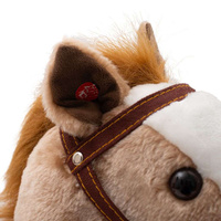 Krásný houpací koník PlayTo byl navržen pro děti, které mají rády dobrodružství. Pohodlné a ergonomicky tvarované sedlo vašemu dítěti poskytne pohodlí a bezpečnost během bezstarostného houpání. Pevné dřevěné lišty, uzda, jezdecké třmeny nebo dřevěné rukojeti pomáhají dítěti udržet rovnováhu. Houpací lišty lze navíc jednoduše odšroubovat. Celý koník je vyroben z hebkého a velmi příjemného na dotyk plyšového materiálu. Po stisknutí oušek koník pohybuje tlamičkou, vesele řechtá nebo vydává zvuky klusajícího koně. Baterie se vkládají do poudra umístěného na bříšku. Hračka pomáhá dítěti rozvíjet koordinaci pohybů a podňecuje jeho představivost.