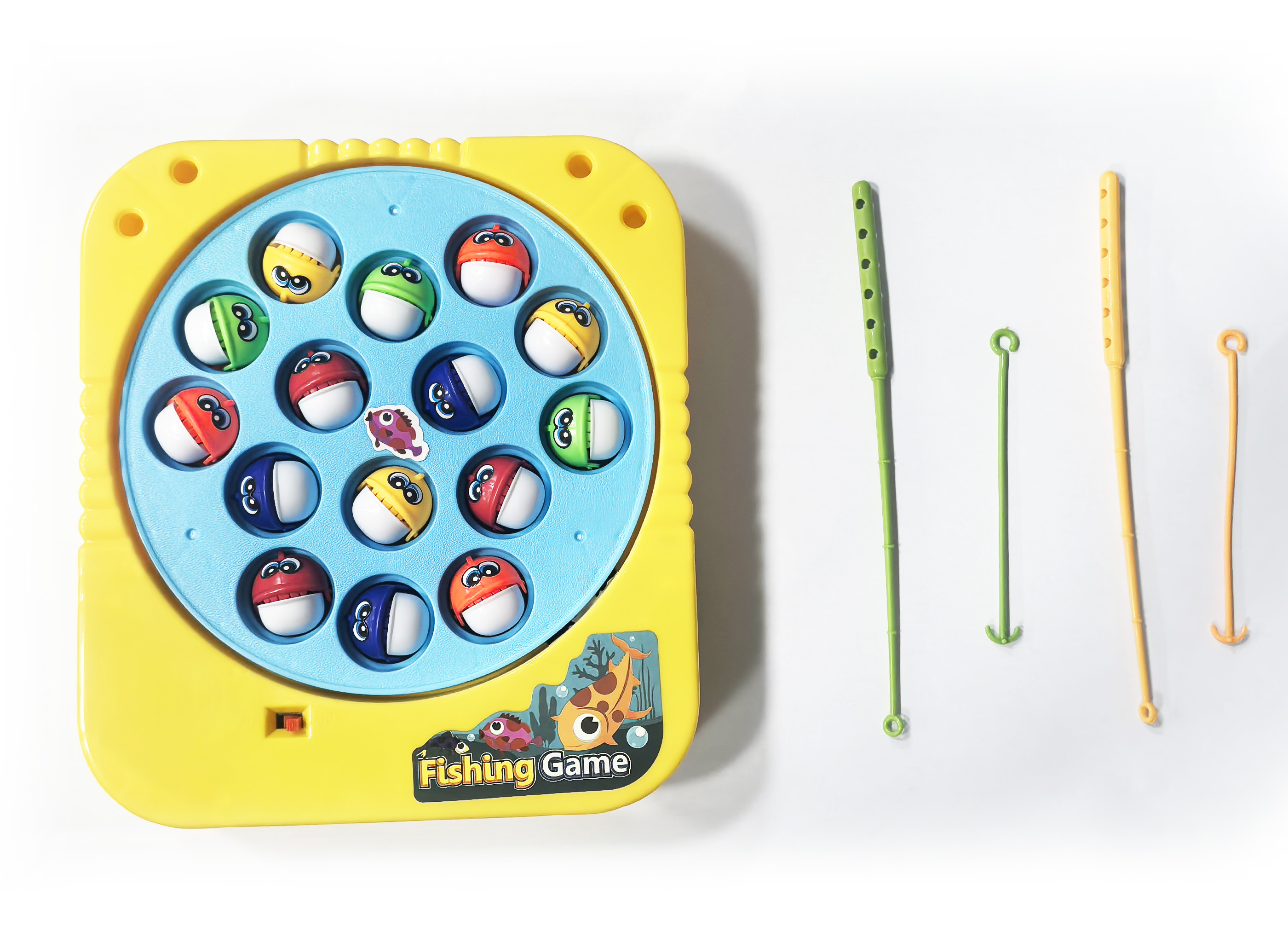Hra chytání rybiček. Rozměry 16x17,5x3. Součástí hry je 15 rybiček a 2 udičky. Hra pro jednoho nebo 2 hráče. Baterie 2xAA 1,5V, nejsou součástí. Více variant.