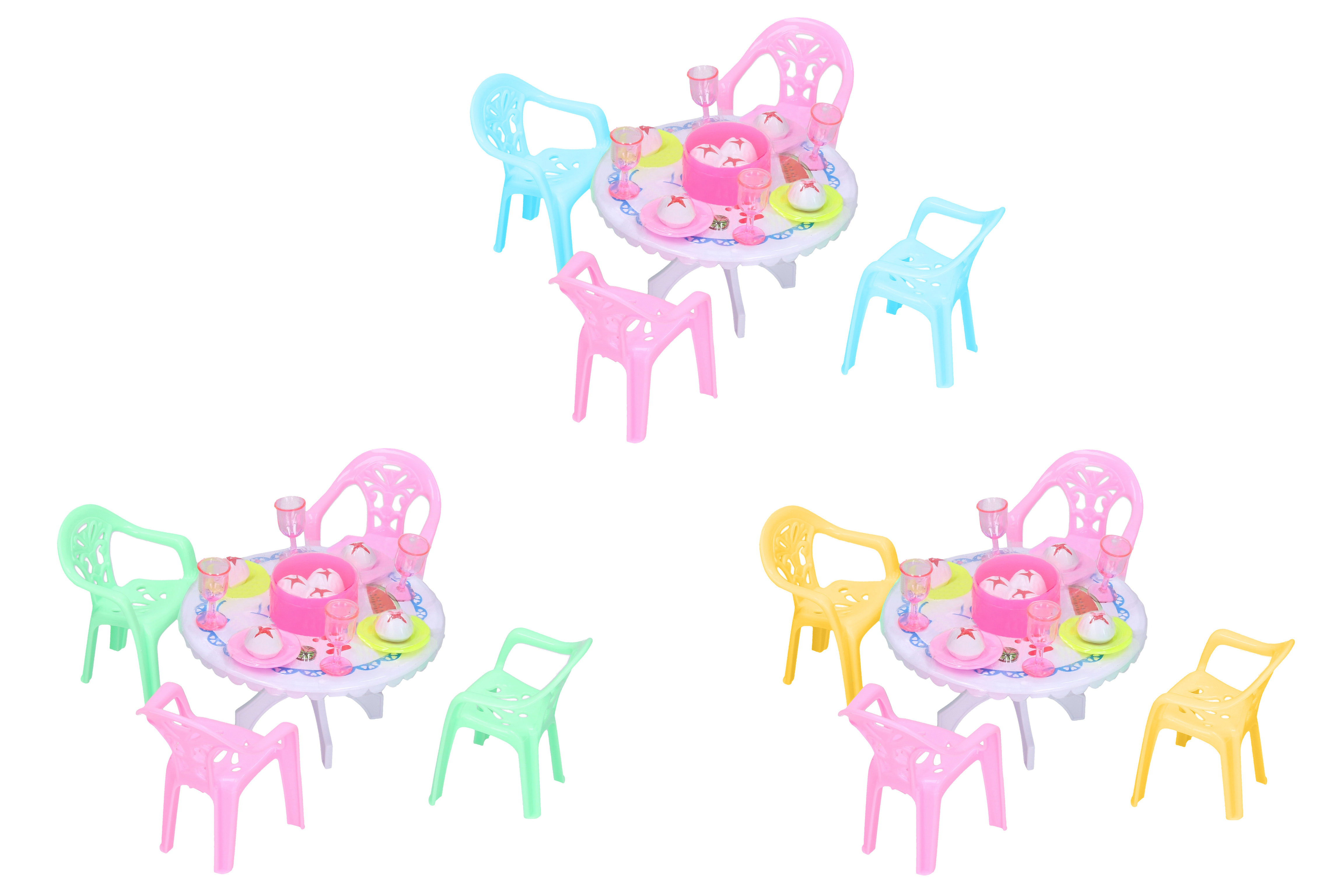 Barevný jídelní set pro panenky nesmí chybět ve tvém pokojíčku! Připrav pro panenky výborný oběd s dezertem!