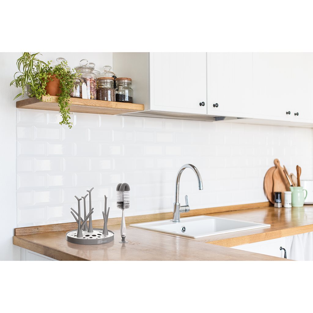 Sada dvou speciálně navržených kartáčů (velký a malý) pro důkladné mytí lahví a dudlíků. Větší kartáč je na konci opatřen houbičkou, která umožňuje ještě důkladnější umytí vnitřku lahve. V rukojeti kartáče je ukrytý malý kartáček na dudlíky. Celá sada je zakončena přísavkou, umožňující připevnění na hladkých površích. Kartáče jsou vyrobeny z odolných a bezpečných materiálů, které neobsahují bisfenol A.