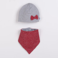 Stylový a praktický holčičí 2-dílný set české značky New Baby Missy. Set se skládá z čepičky a šátku na krk. Čepička je zdobená roztomilou mašličkou a je ušitá z dvojité látky, a tím jsou více chráněny ouška před větrem. Šátek na krk je oboustranný a je na vás, zda si vyberete jednobarevnou variantu, nebo variantu se vzorem. Šátek lze zapnout do 2 velikostí. Úžasný, kvalitní a velmi praktický doplněk na jaro i podzim. Pro New Baby je velmi důležitá spokojenost zákazníka a právě proto vám nabízíme set z kolekce New Baby Missy. Materiál: 95% bavlna, 5% elastan.