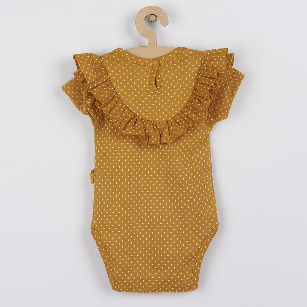Nápadité bavlněné kojenecké body s krátkým rukávem Nicol Michelle pro miminka. Body zdobí roztomilý potisk a volánek. Boční zapínání na cvočky po celé délce a mezi nožičkama usnadňuje oblékání a přebalování. Body je pro miminka důležitým kouskem oblečení. Při jakémkoliv pohybu jsou zádička miminka stále přikrytá. Michelle je nová dechberoucí kolekce navržena s ohledem na potřeby našich nejmenších. Složení: 100% bavlna.