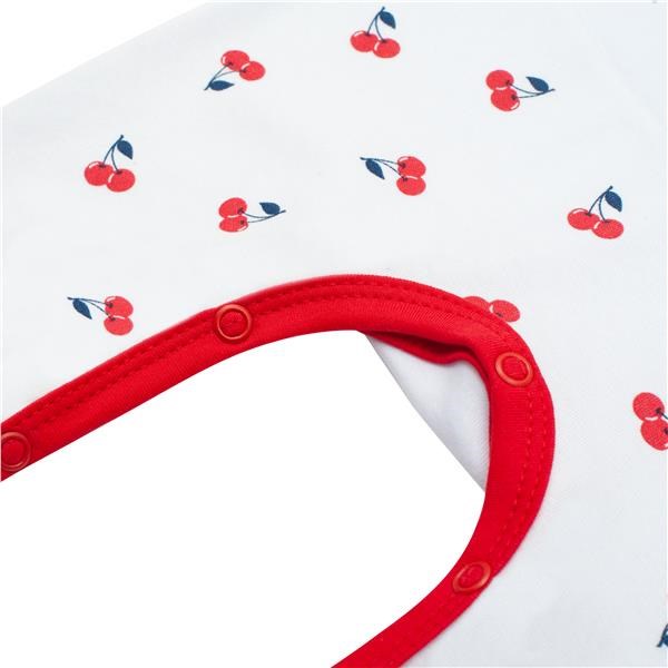 Krásné bavlněné dupačky české značky New Baby Cherry pro miminka. Dupačky jsou zdobeny nášivkou Cherry s třešničkami. Nášivka je podlepená proti poškrábání. Spodní část je celopotištená třešničkami. Okolo krčku a ramínek je barevné lemování. Zapínání na ramínkách a mezi nožičkama usnadňuje oblékání a přebalování miminka. Pro miminka jsou dupačky důležitým kouskem oblečení a při jakémkoliv pohybu jsou zádička miminka stále přikrytá. Díky příjemnému a kvalitnímu materiálu se miminko bude cítit velmi příjemně a pohodlně. Pro New Baby je velmi důležitá spokojenost zákaznika a právě proto vám nabízíme naši kvalitní holčičí letní kolekci Cherry. Složení: 100% bavlna.