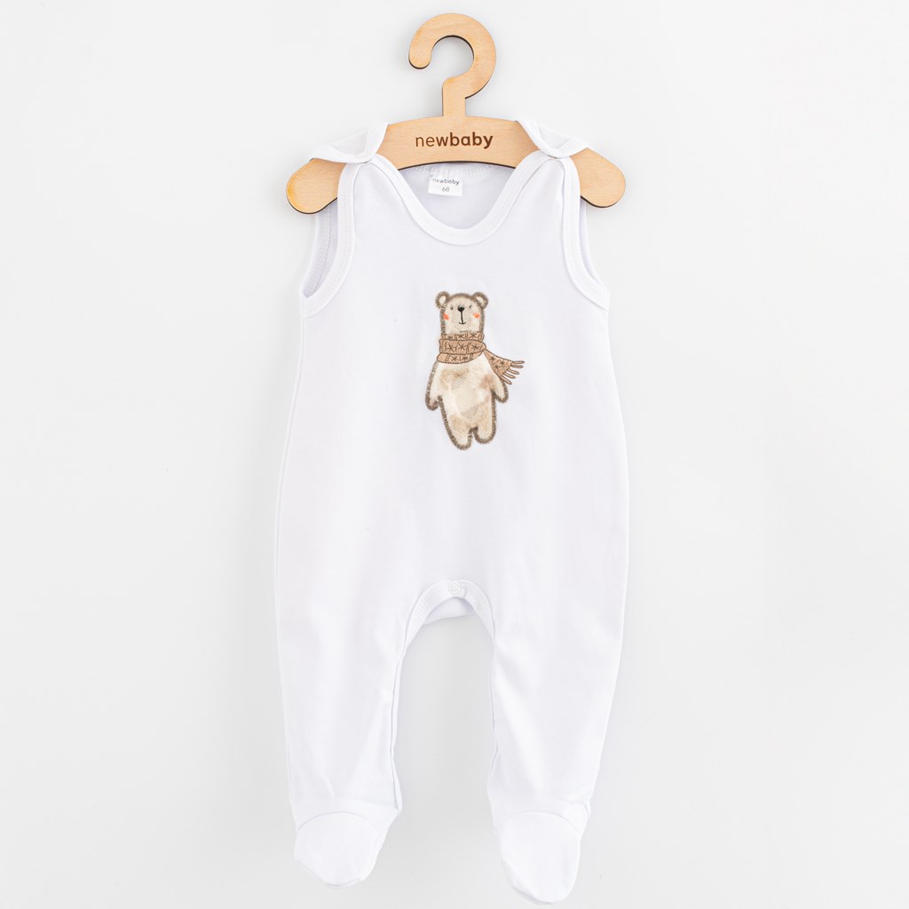 Úchvatné bavlněné kojenecké dupačky české značky New Baby Polar Bear. Dupačky jsou zdobeny výšivkou roztomilého medvídka. Výšivka je podlepená látkou proti poškrábání. Zapínání na cvočky na ramínkach a mezi nožičkama usnadňuje oblékání a přebalování miminka. Příjemný a kvalitní materiál zaručí spokojenost Vašeho miminka. Naše dupačky jsou vhodné pro kluky i holčičky a s roztomilým zimním motivem, budou neodolatelné. Složení: 100% bavlna.