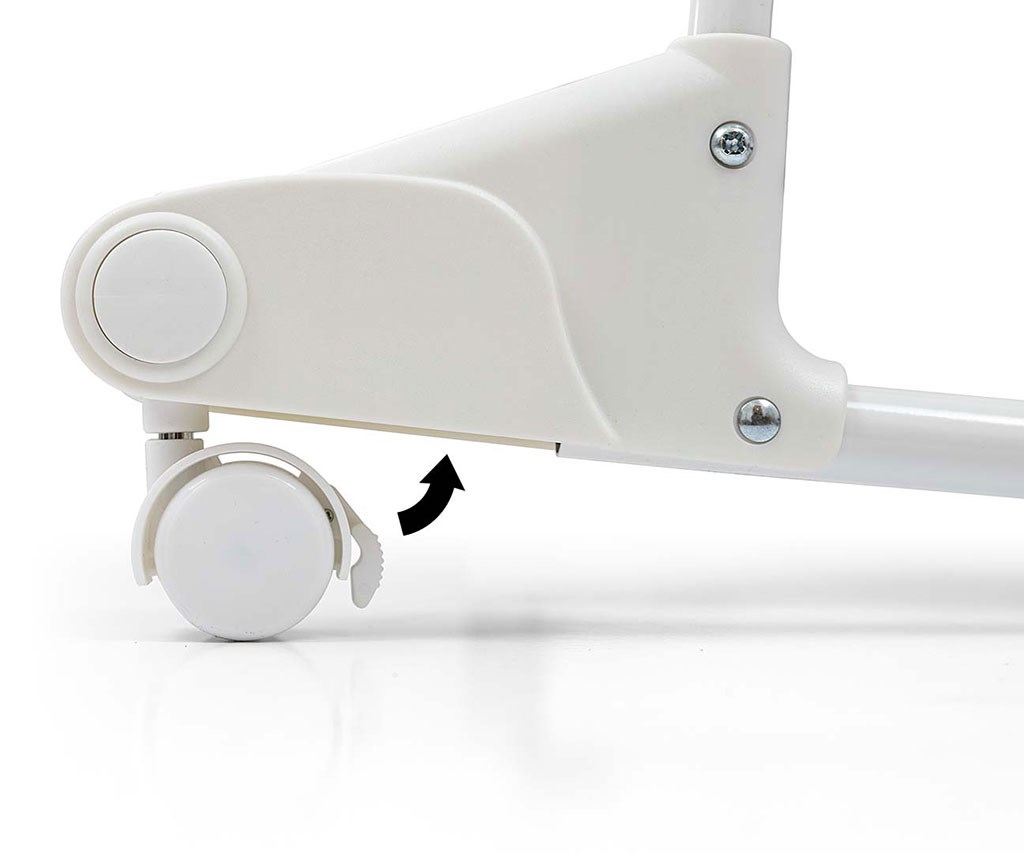 Pro změnu funkce z postýlky na kolébku je třeba zatáhnout za každé kolečko a otočit jím.