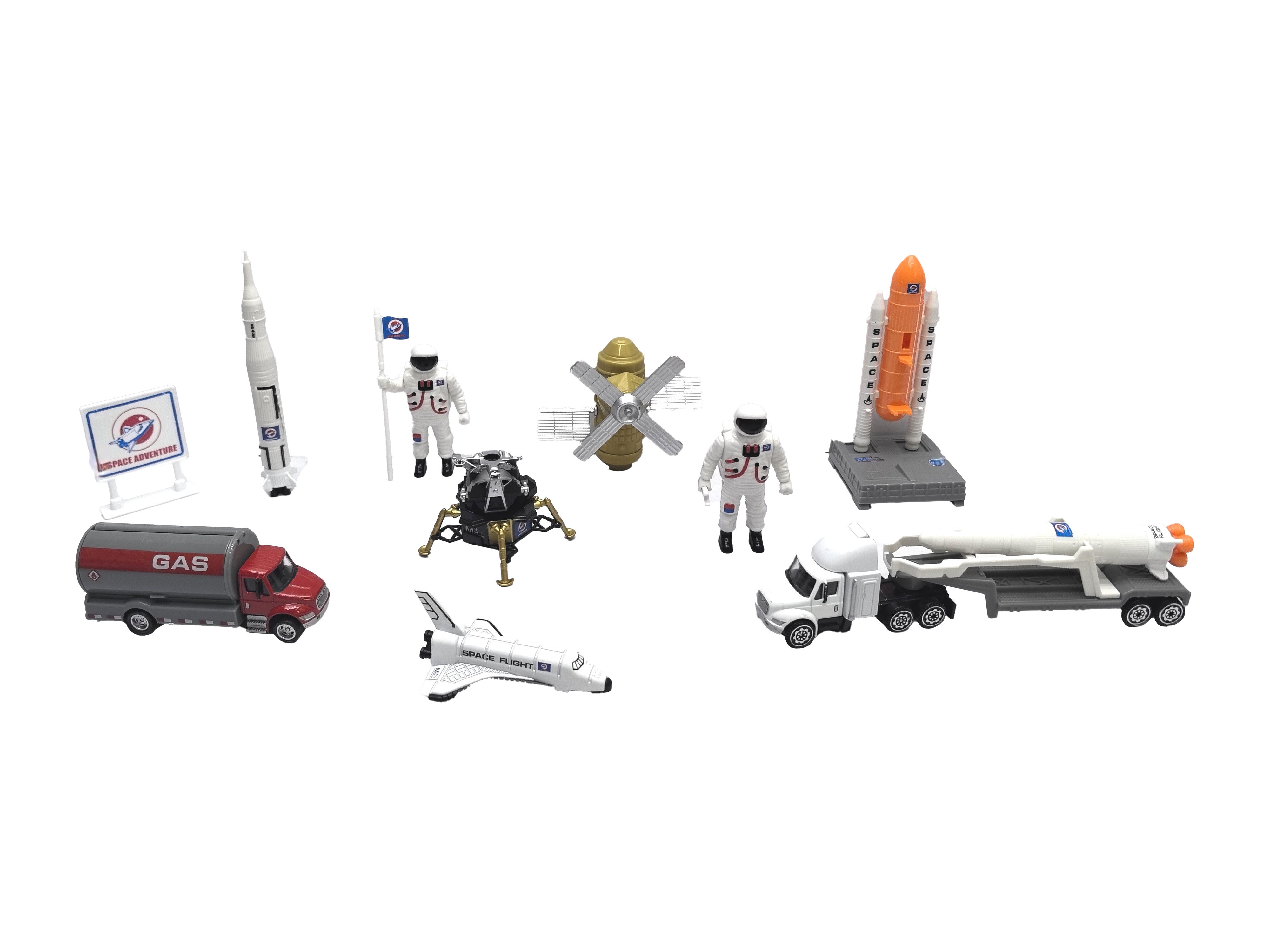 Kosmonaut set . Velikost kosmonauta 7 cm. Obsahuje 2 kosmonauty a různé vesmírné dopravní prostředky.