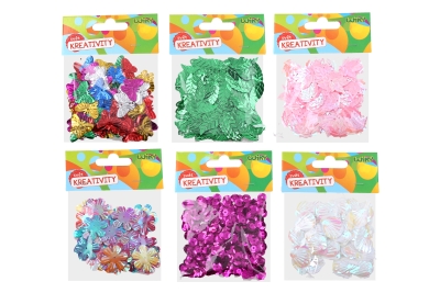 Obsahuje 10 g dekorací. Motivy jsou lístky, kolečka, kytičky, mix, mušličky, motýlci.