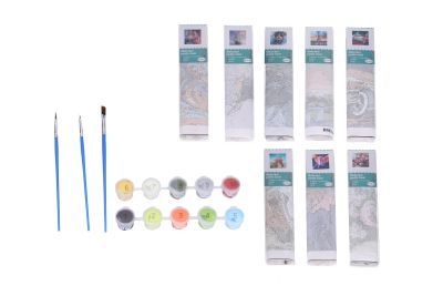 Uvnitř balení: 1x plátno, 1x sada barev, 3x štětec, návod.