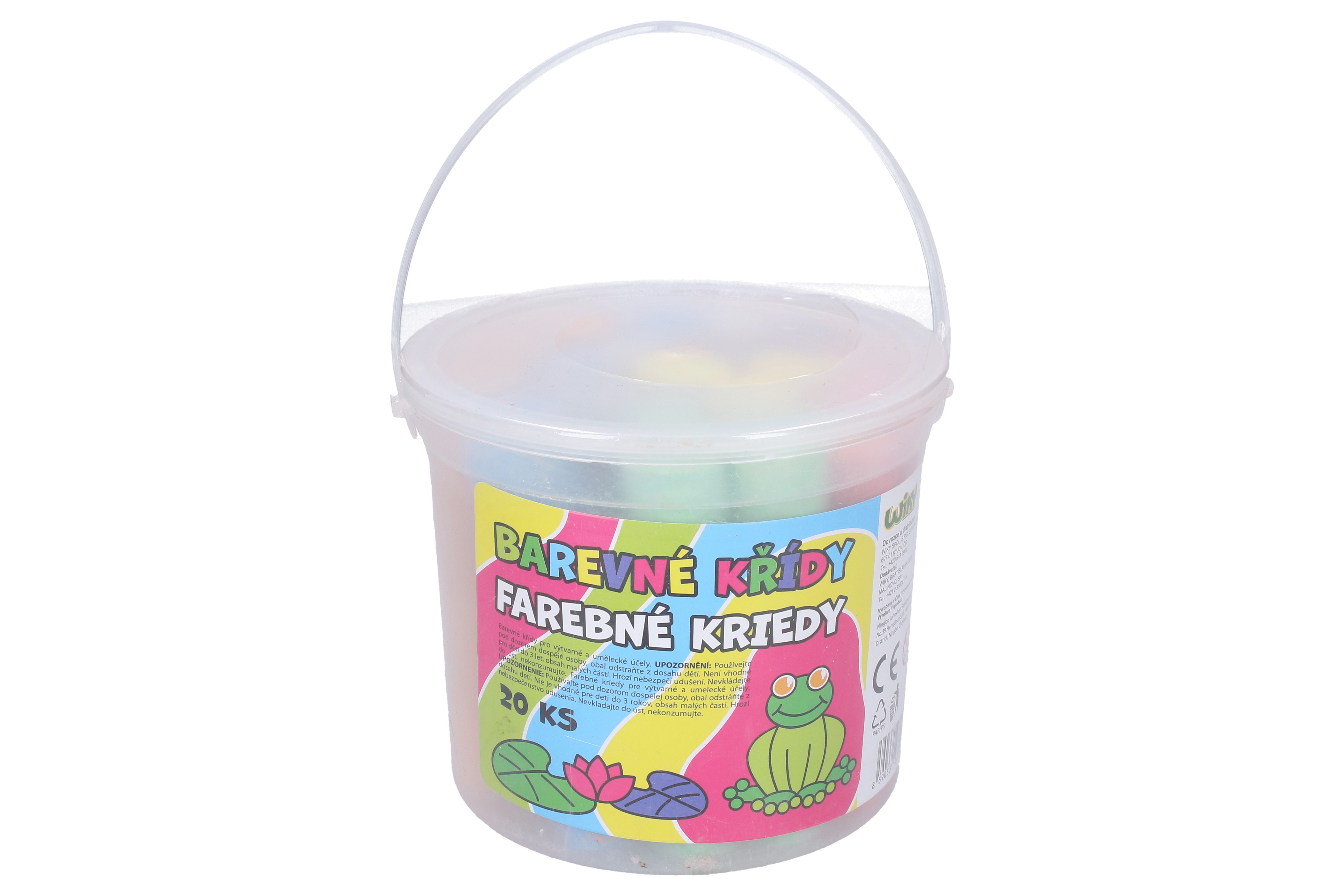 Kulaté barevné chodníkové křídy v kyblíku. • 20 ks v balení