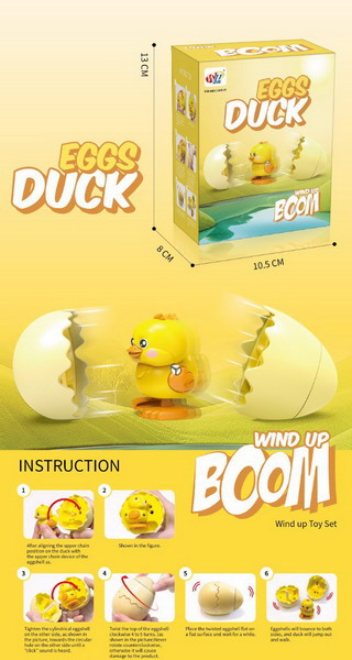 Kuře ve vajíčku natahovací. Rozměry 9,5x6,5x6,8 cm. Natahování vajíčkem. Kuře z vajíčka vyskočí a chodí.