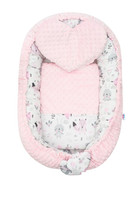 Luxusní hnízdečko s peřinkou pro miminka New Baby. Hnízdečko je praktický vynikající pomocník v prvních měsících života dítěte. Hnízdečko je oboustranné, může se používat z vnější i vnitřní strany. Oboustranné přítulné hnízdečko pro miminko navozuje pocit bezpečí a děťátko se cítí spokojeně jako u maminky v bříšku. Miminku se daleko lépe usíná a je klidnější. Hnízdečko má praktickou šňůrku, kterou lze upravovat velikost, může se více stáhnout anebo úplně uvolnit. Hnízdečko je vyrobené ze dvou typů tkanin, první je velmi měkká a na dotek příjemná, hebká Minky látka s výstupky pro stimulaci senzomotoriky a druhá je 100% bavlna. Součástí hnízdečka je polštářek ve tvaru srdce a peřinka zdobená srdíčkem. Hnízdečko má mnoho využití, lze používat v postýlce, v kočárku, na pohovce i na zemi. Rozměry: cca 55x75 cm, vnitřní rozměry: cca 35x59 cm. Peřinka: Rozměry: 65x47 cm. Složení: jedna strana 100% bavlna, druhá strana minky 100% polyester, výplň: antialergické vlákno. Produkt české značky.