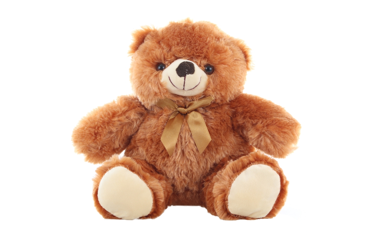 Plyšový medvěd s jemnou plyší o velikosti cca 33 cm (celé tělo), sedící 24 cm. Věk 0+