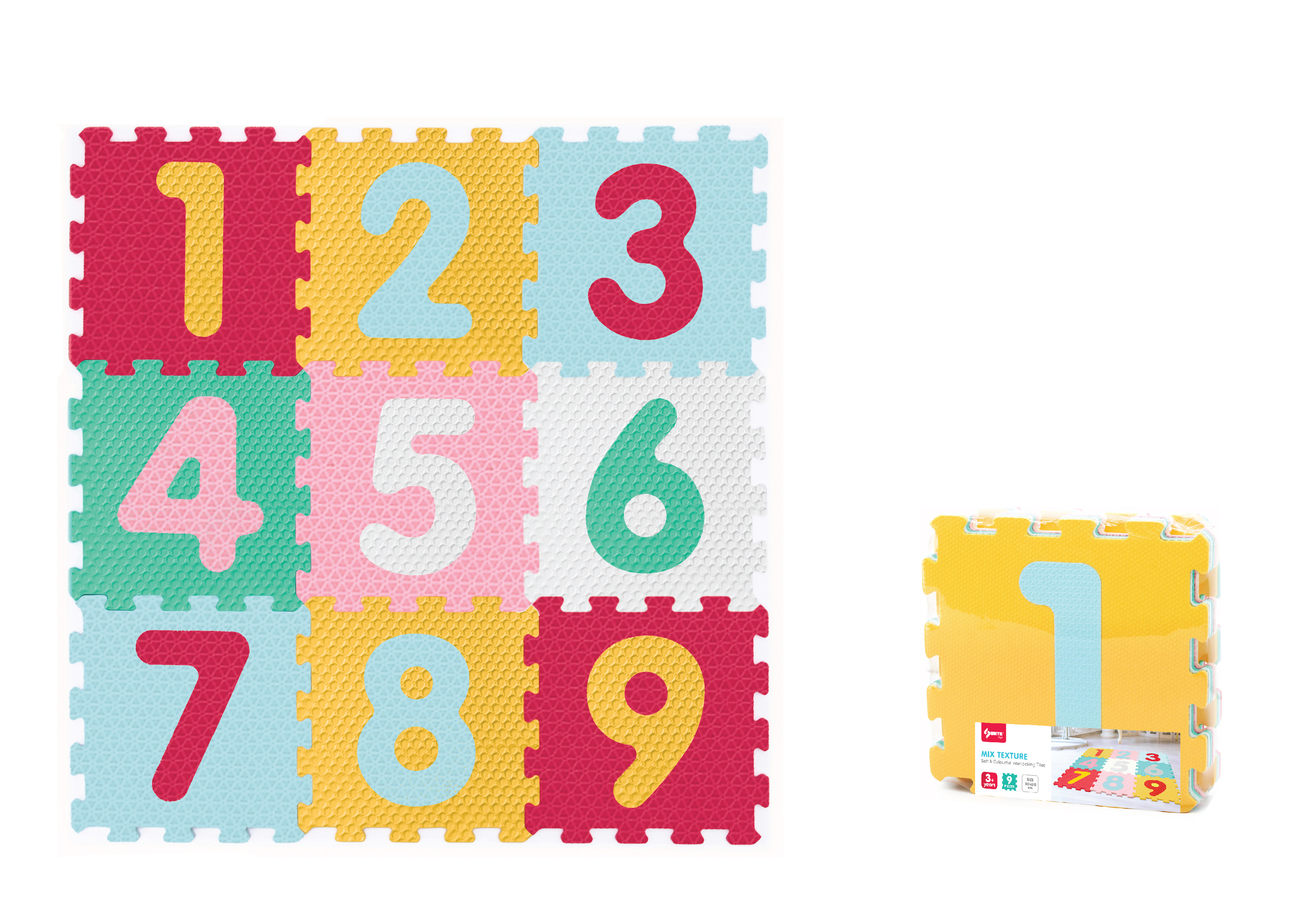 Měkké bloky 9ks. Velikost 32x32cm. Bloky mají vyjímatelná čísla.