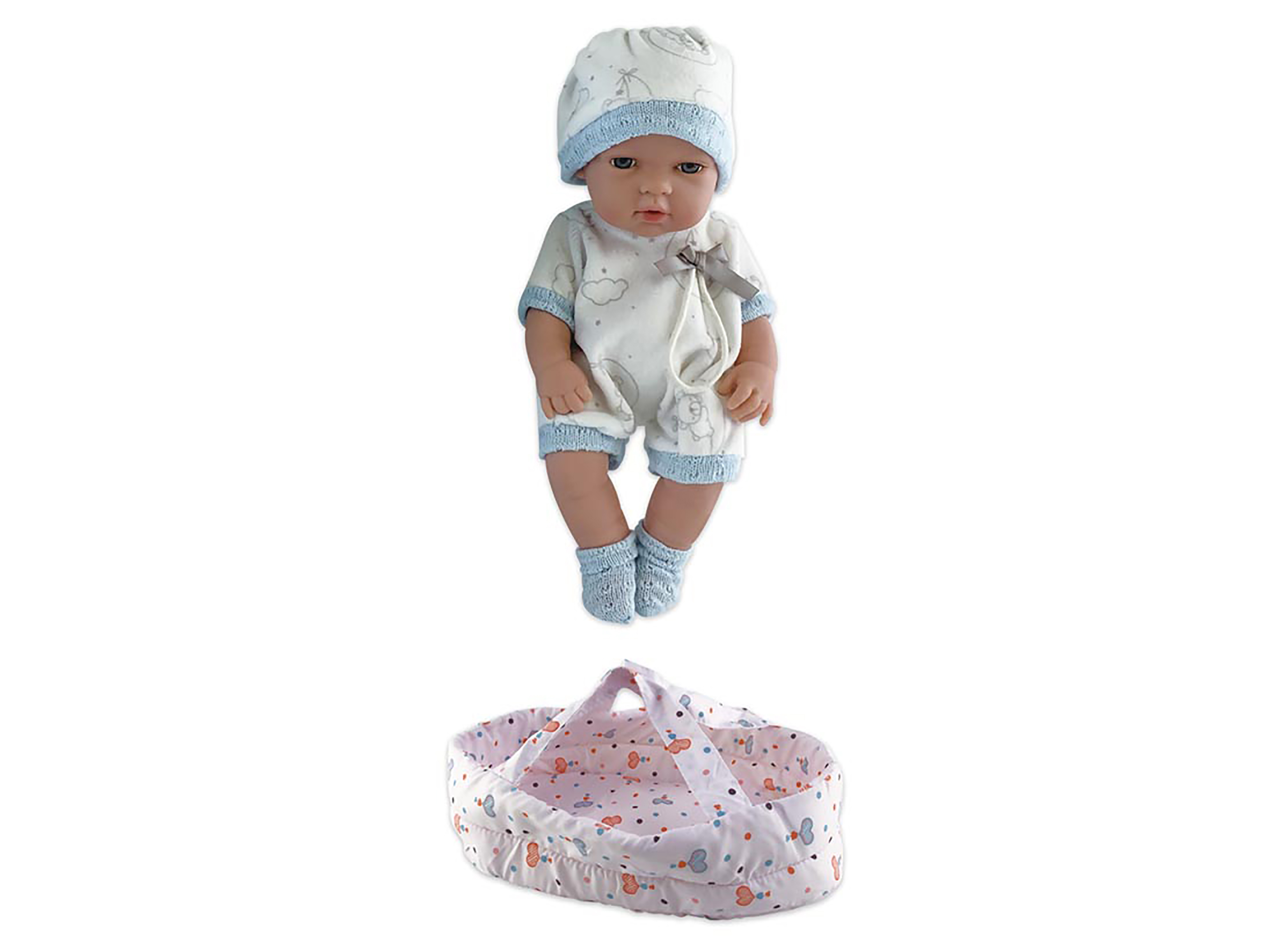 Miminko v tašce. Velikost 30cm. Obsahuje miminko a tašku na přenášení miminka.