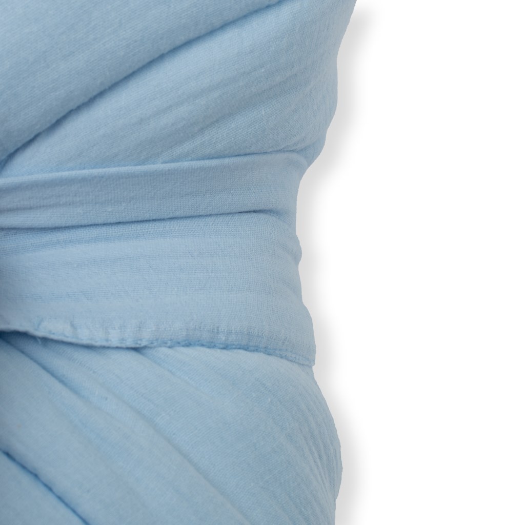Mušelín je jedna z nejčistších, nejjednodušších a nejjemnějších tkanin na světě. A čím je tak vyjímečný ? Především jeho prodyšností. Lehká struktura umožňuje mušelínu „dýchat“ a zajišťuje dostatečnou cirkulaci vzduchu, čímž snižuje riziko přehřátí. Mušelín je velmi odolný a to tak, že bez problémů zvládá opakované praní a postupem času je ještě lehčí a jemnější.