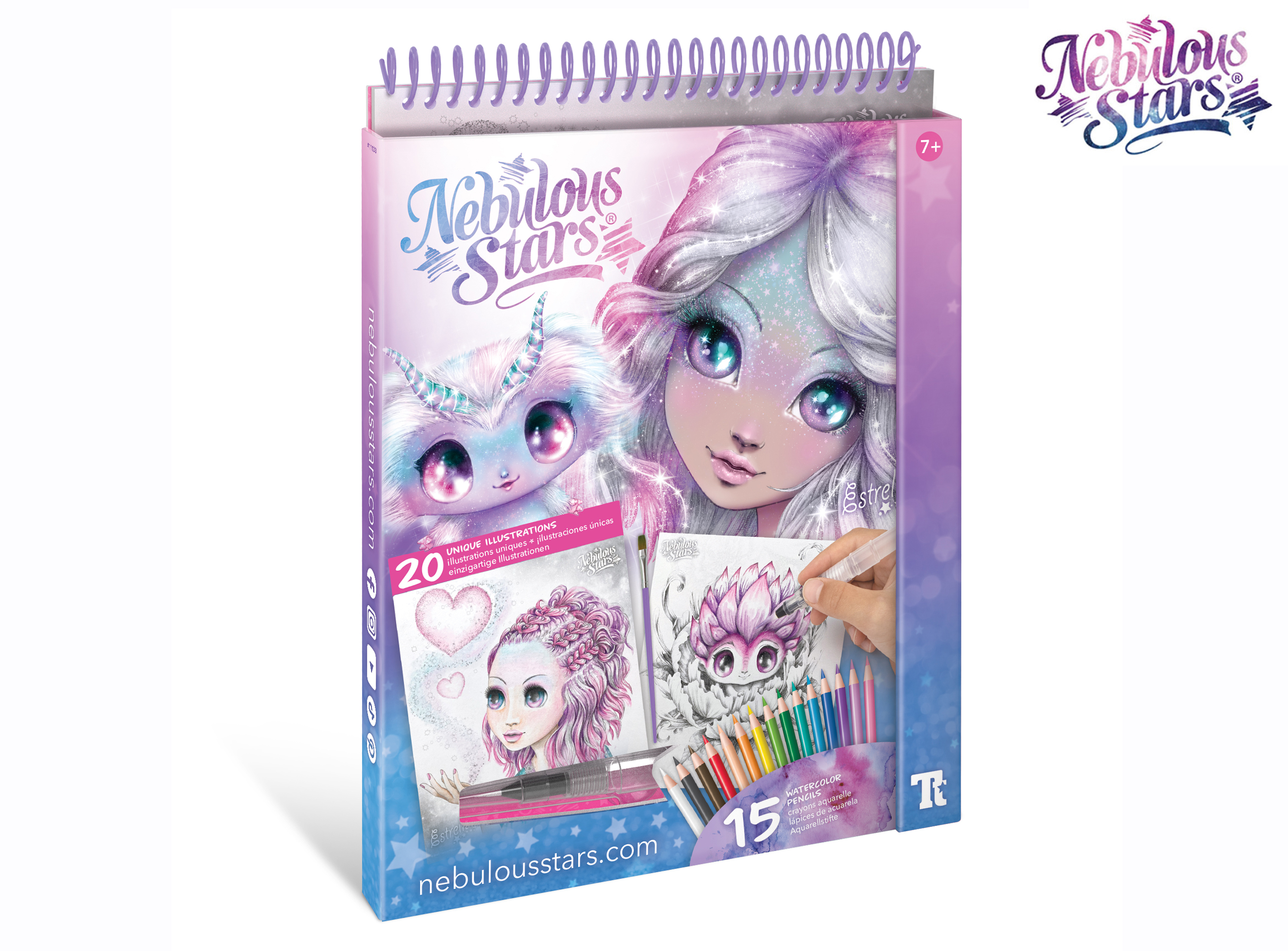 Nebulous Stars omalovánky. Pro vodové fixy. Obsah balení - 20 ručně kreslených ilustrací, 15 vodových fixů, doplnitelný štětec pro vodové barvy, štětec, příběh, návod. Display box 6 ks.