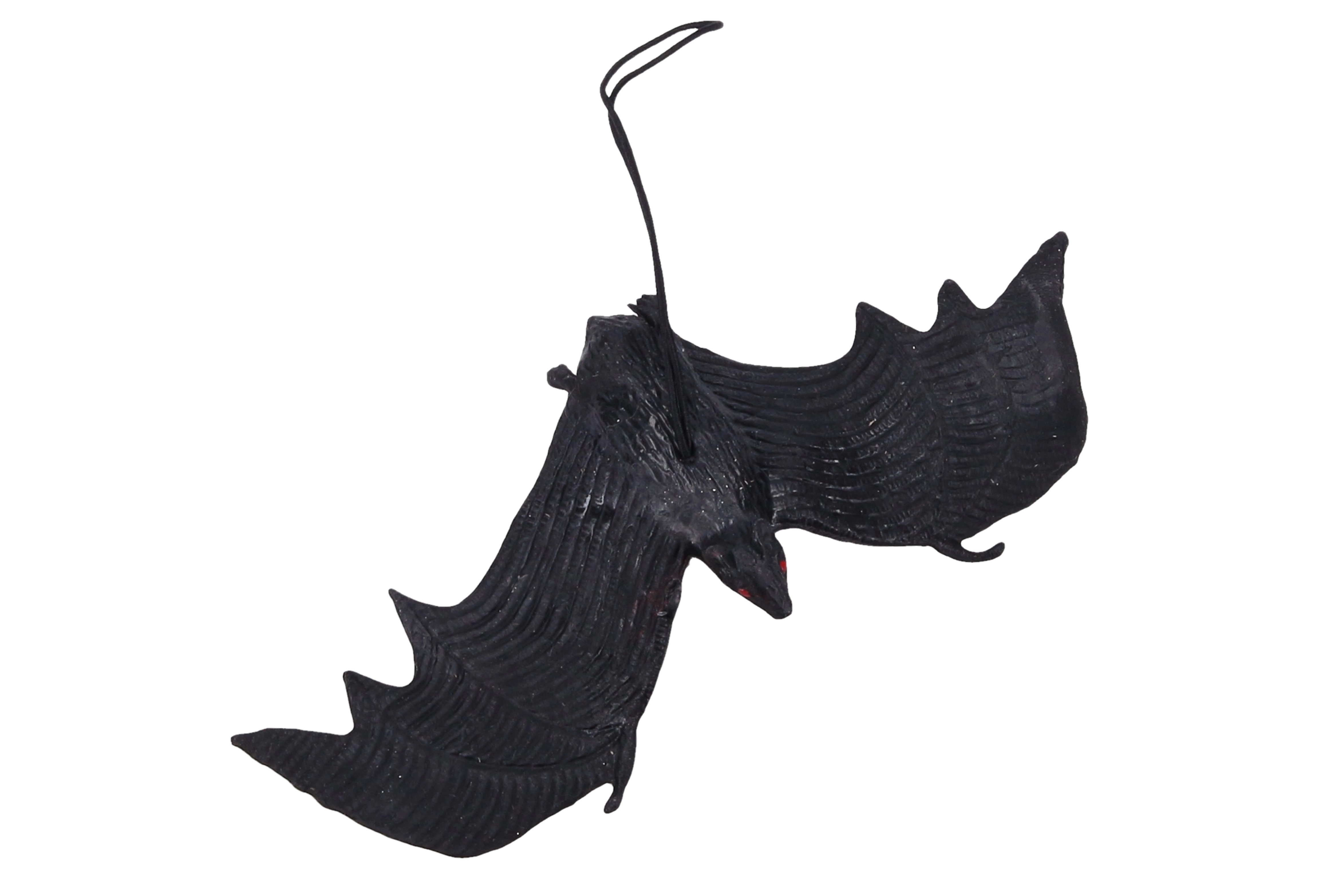 Gumový černý netopýr se po pověšení za připnuté poutko bude třepotat. Zábavné dekorace pro halloween a čarodějnickou výzdobu.